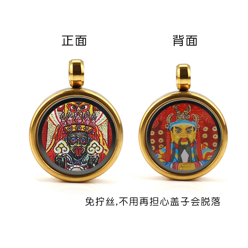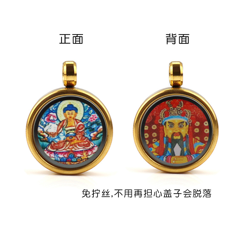 西藏唐卡嘎乌盒金色双面唐卡八大守护五爷文殊扎基拉姆唐卡吊坠