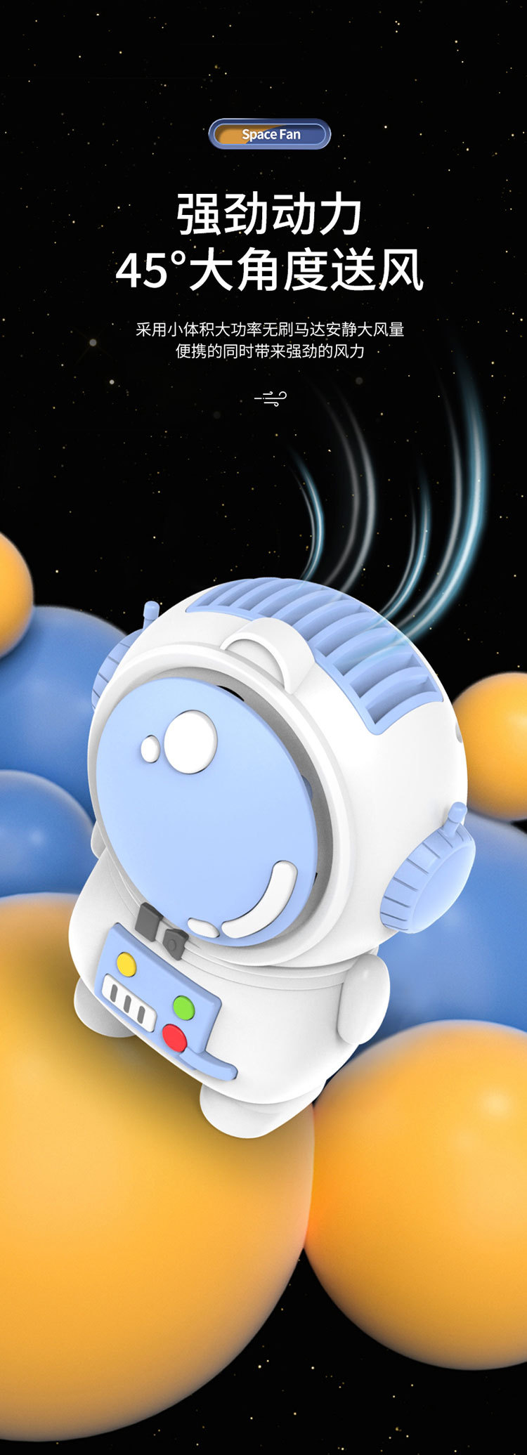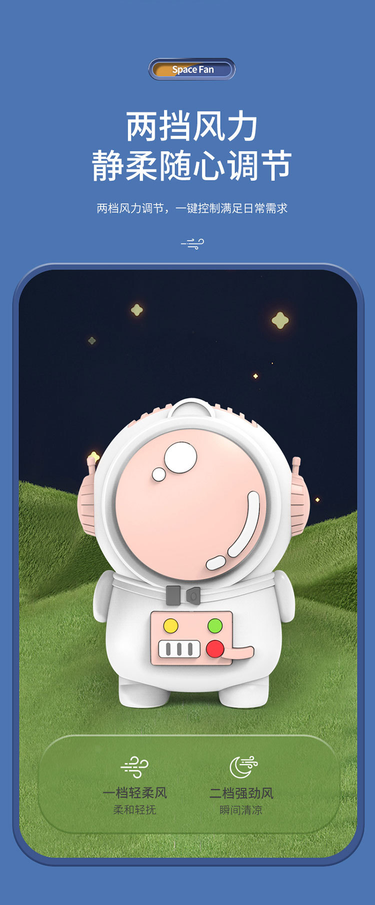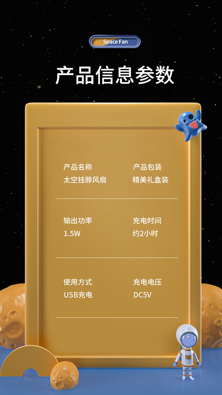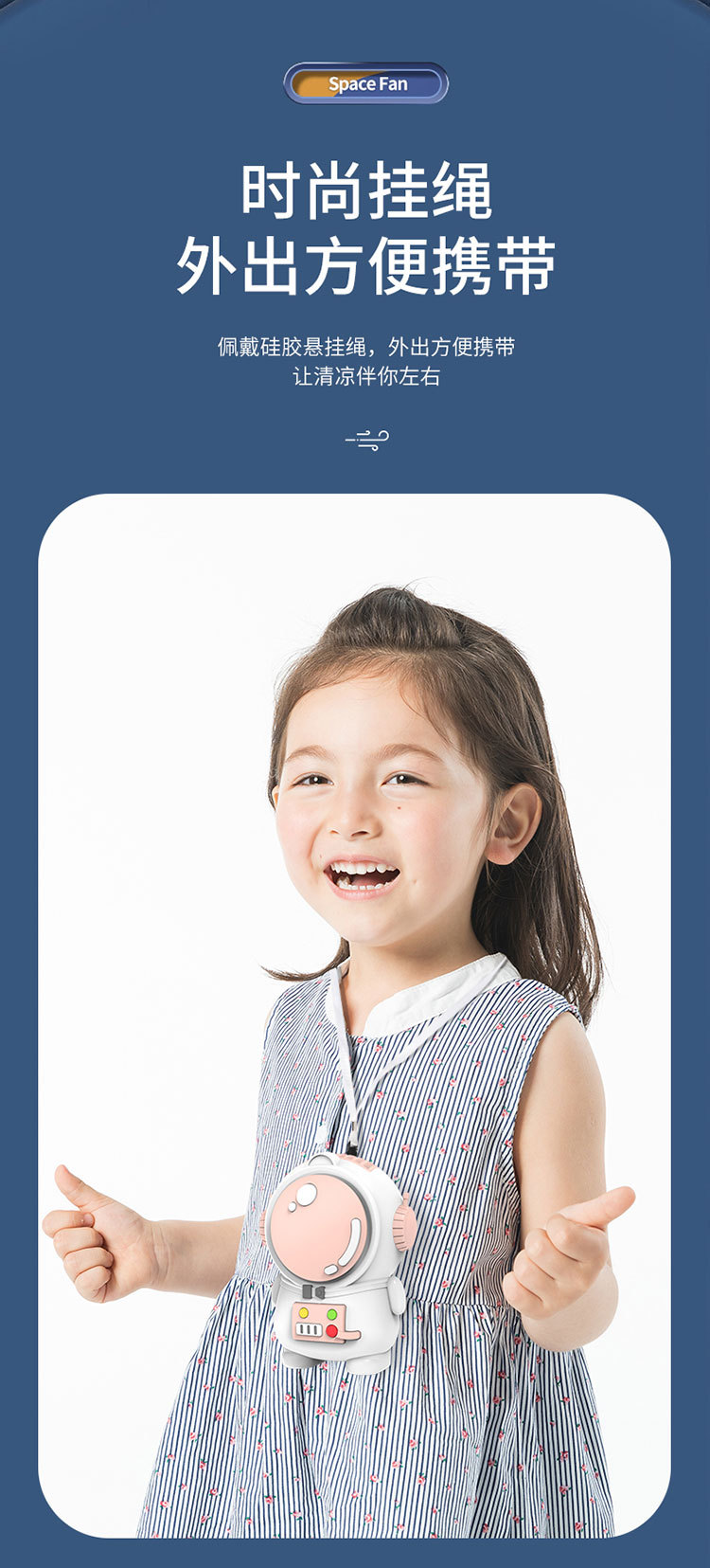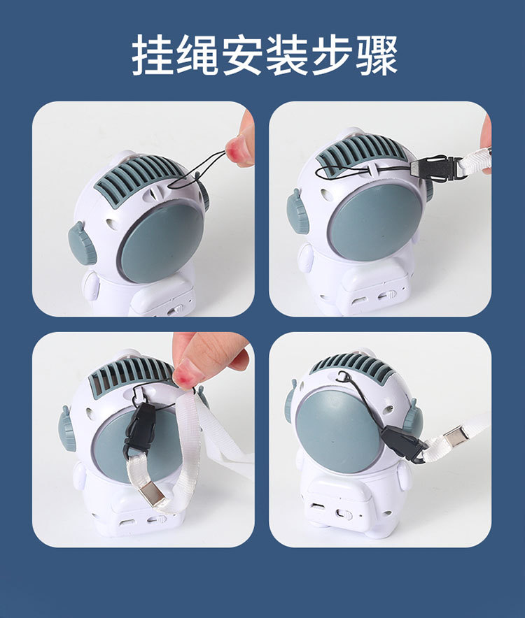 星际宇航员太空人无叶风扇USB充电两档风速小风扇挂脖便携风扇厂