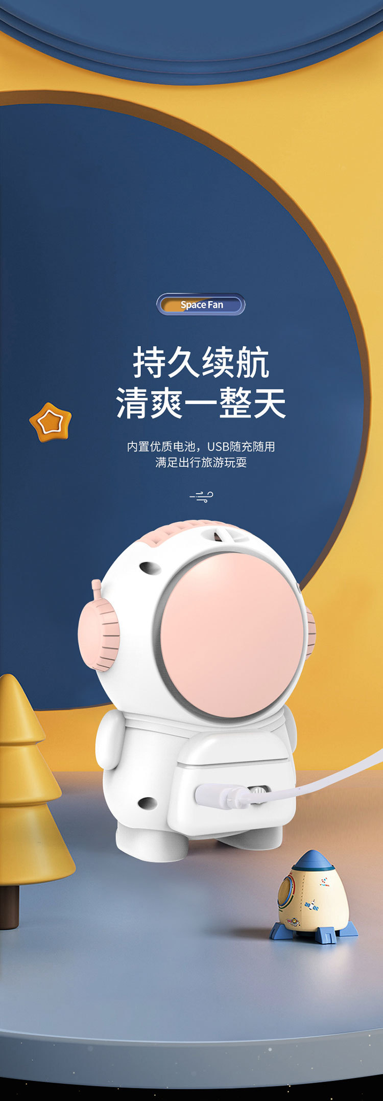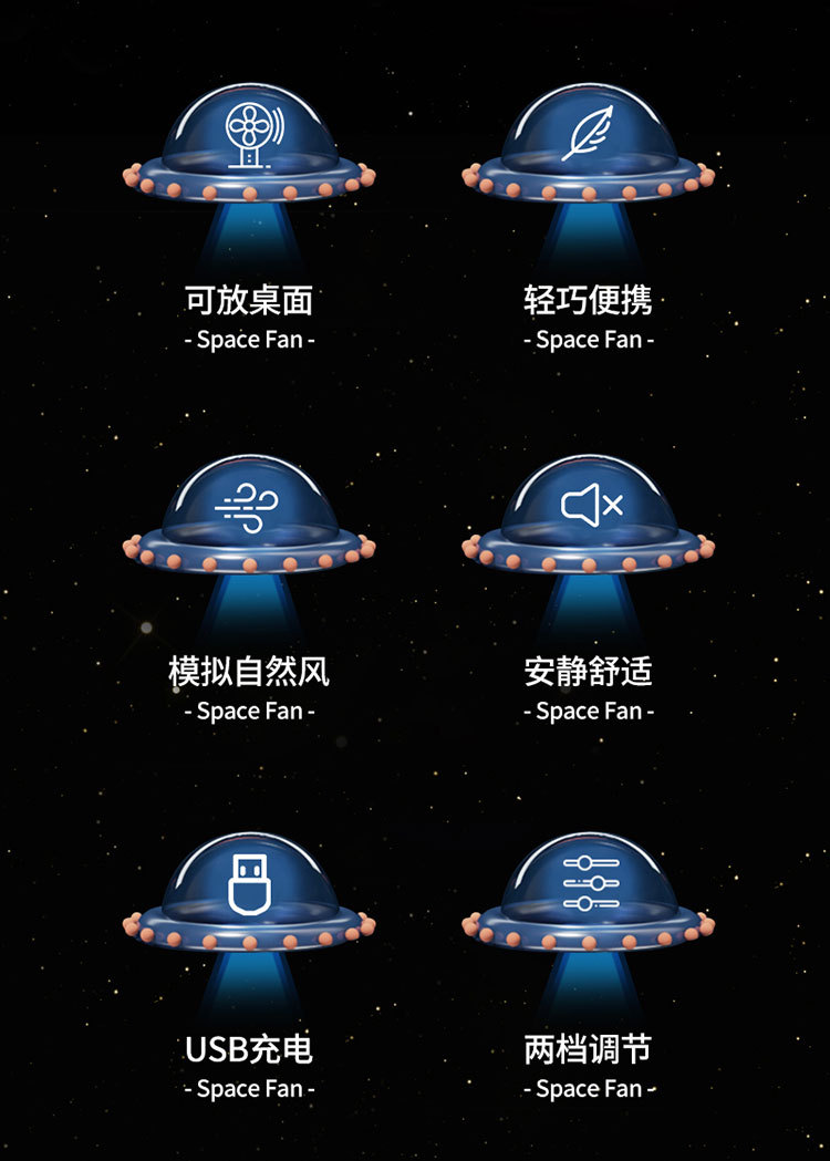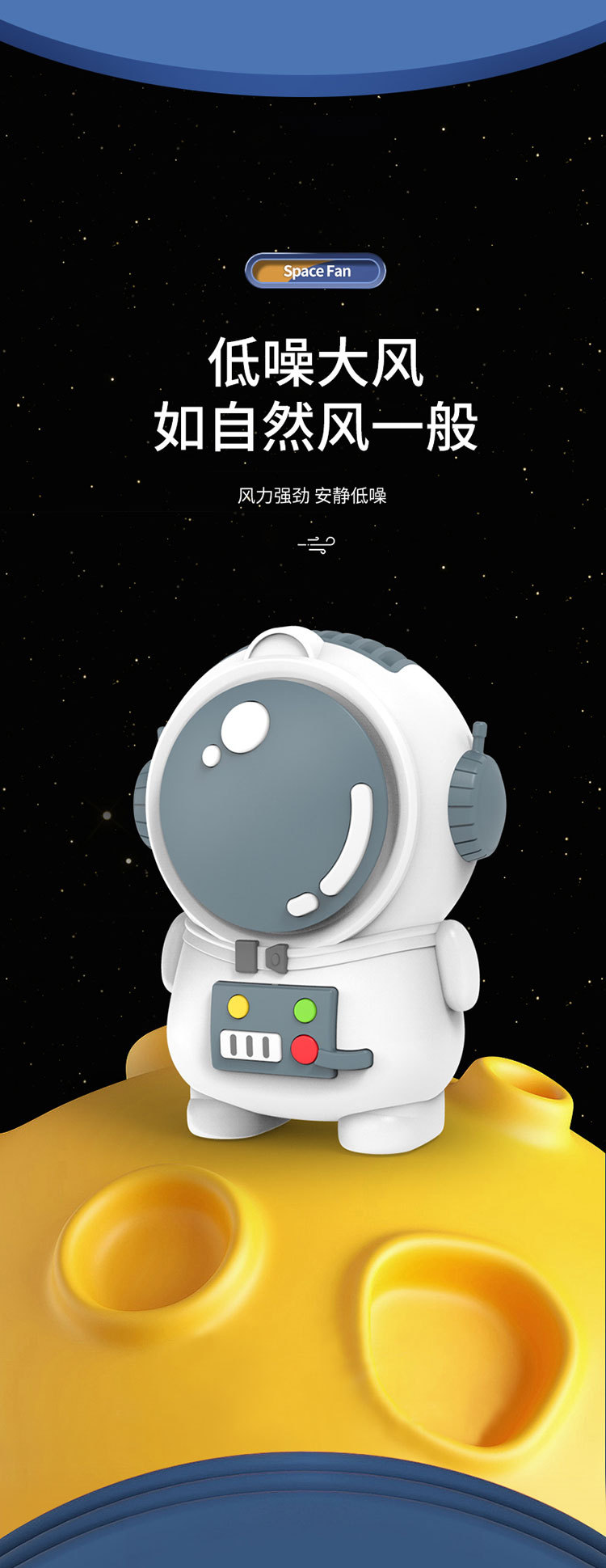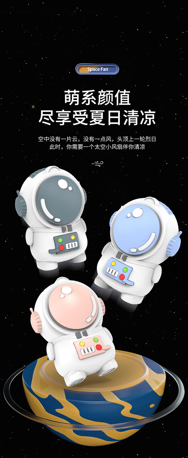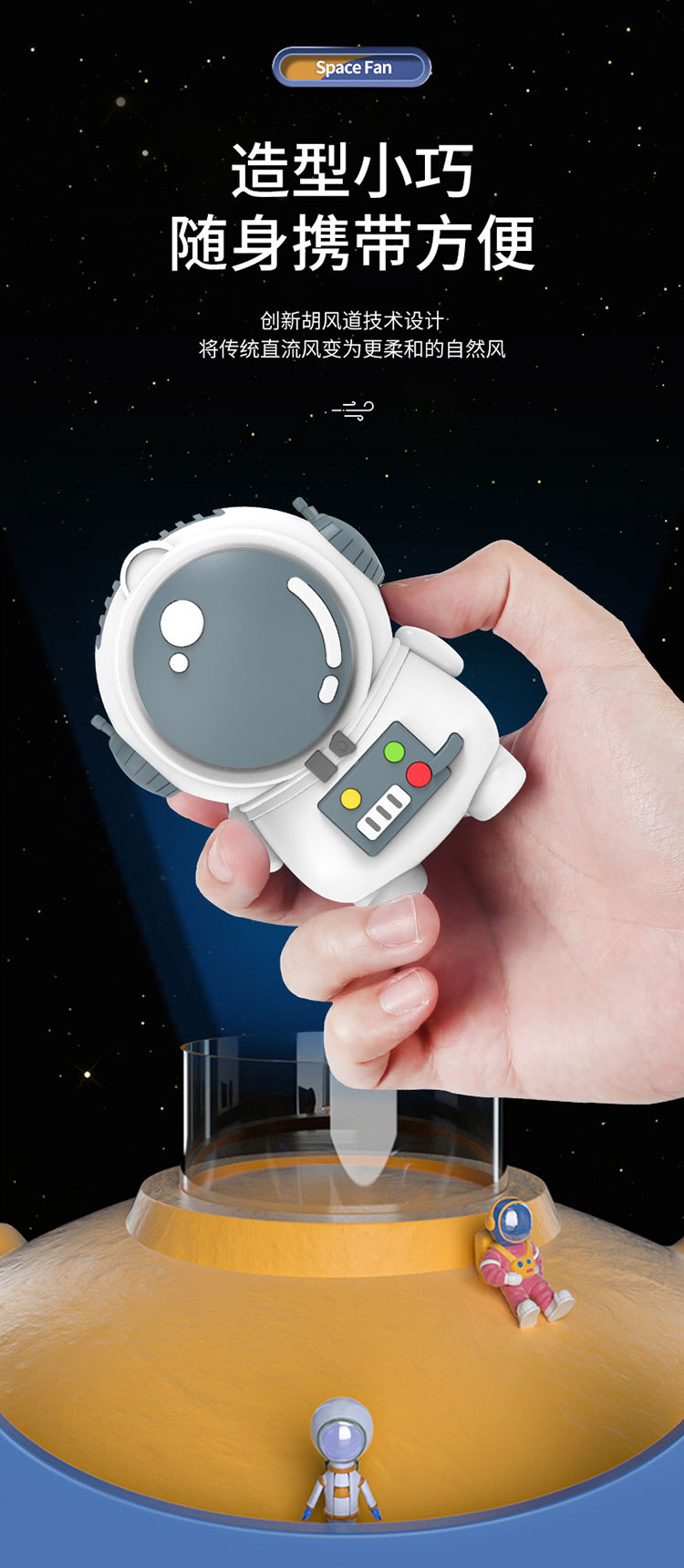 星际宇航员太空人无叶风扇USB充电两档风速小风扇挂脖便携风扇厂