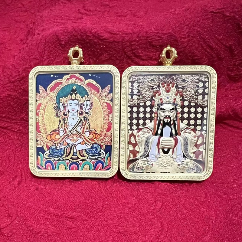 藏式唐卡五台山龙五爷立体纯铜嘎乌盒描金八大守护随身吊坠子批发