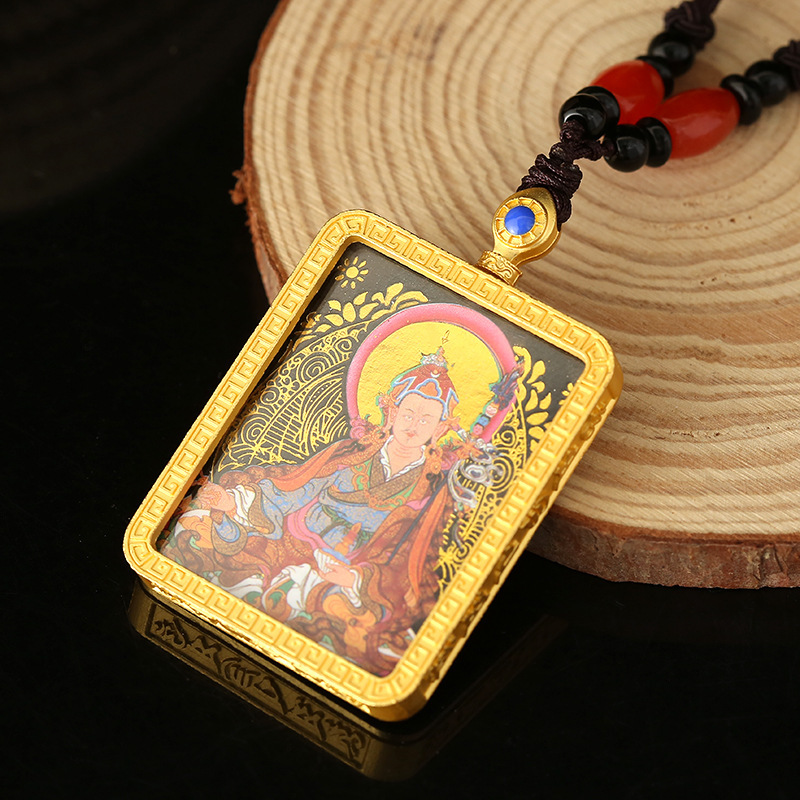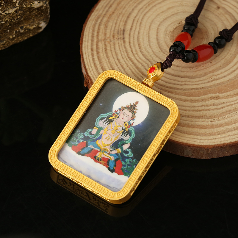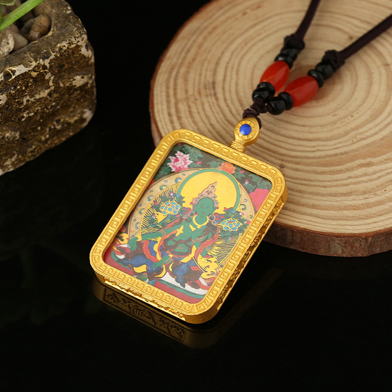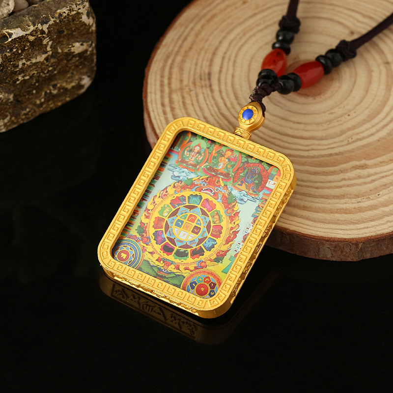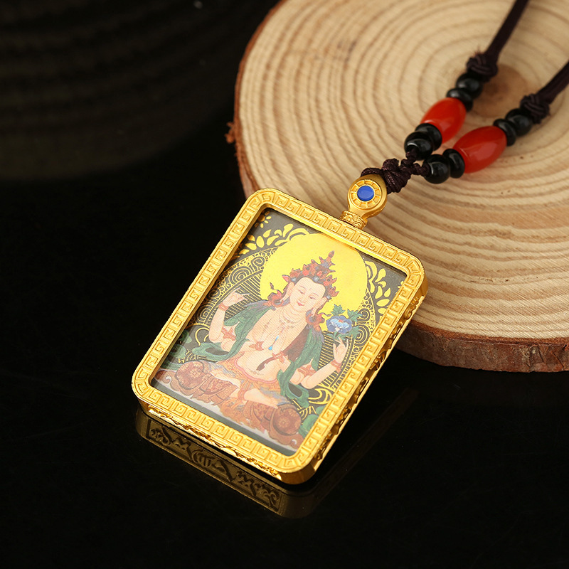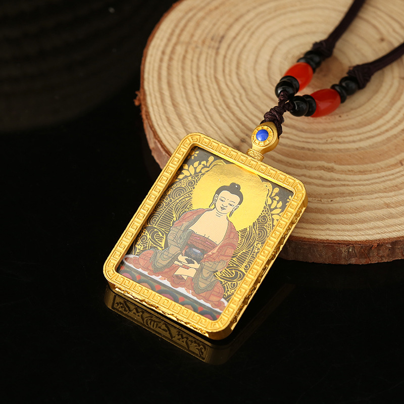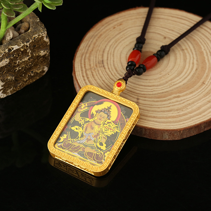 唐卡嘎乌盒新品西藏金色双面唐卡方行观音财神阿弥陀佛项链批发