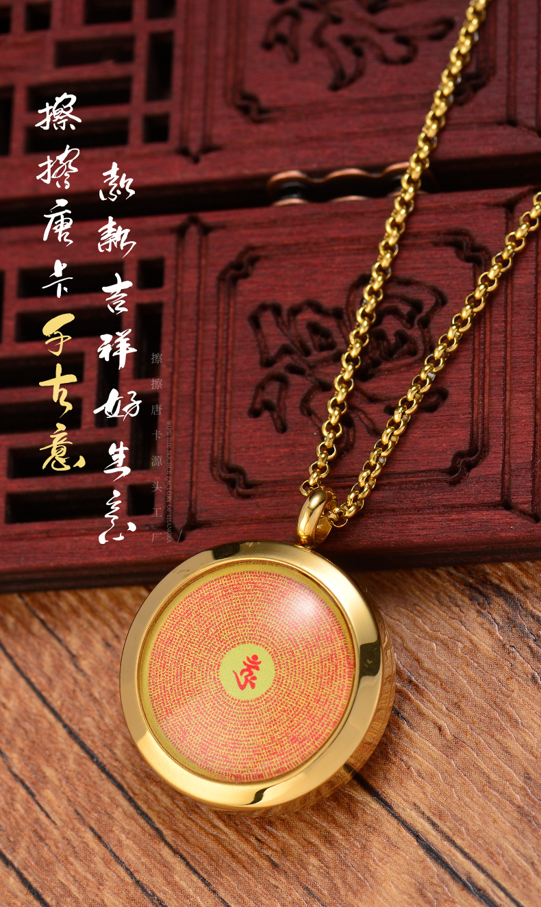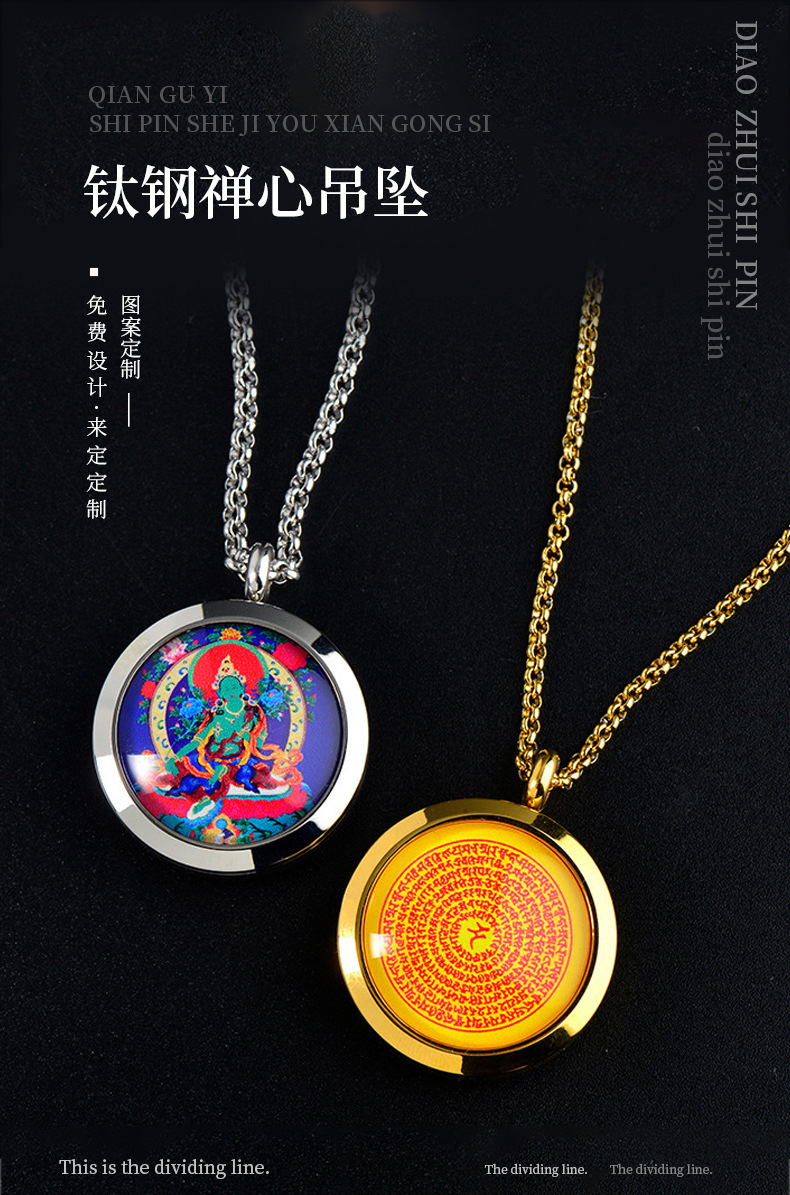 新非遗唐卡吊坠迷你扎基拉姆绿度母黄财可打开男女钛钢嘎乌盒吊坠