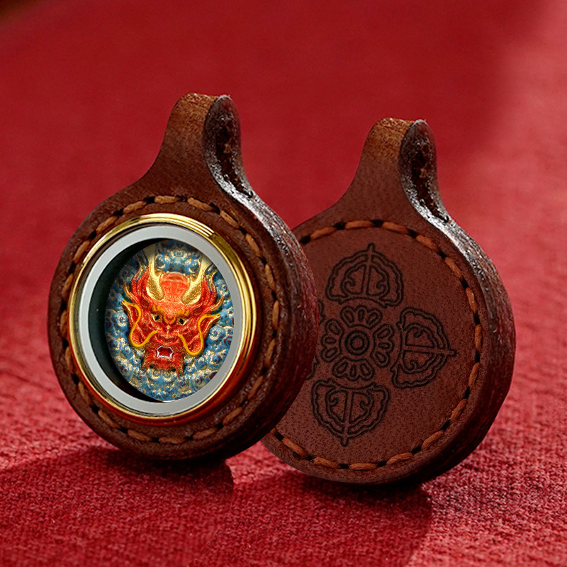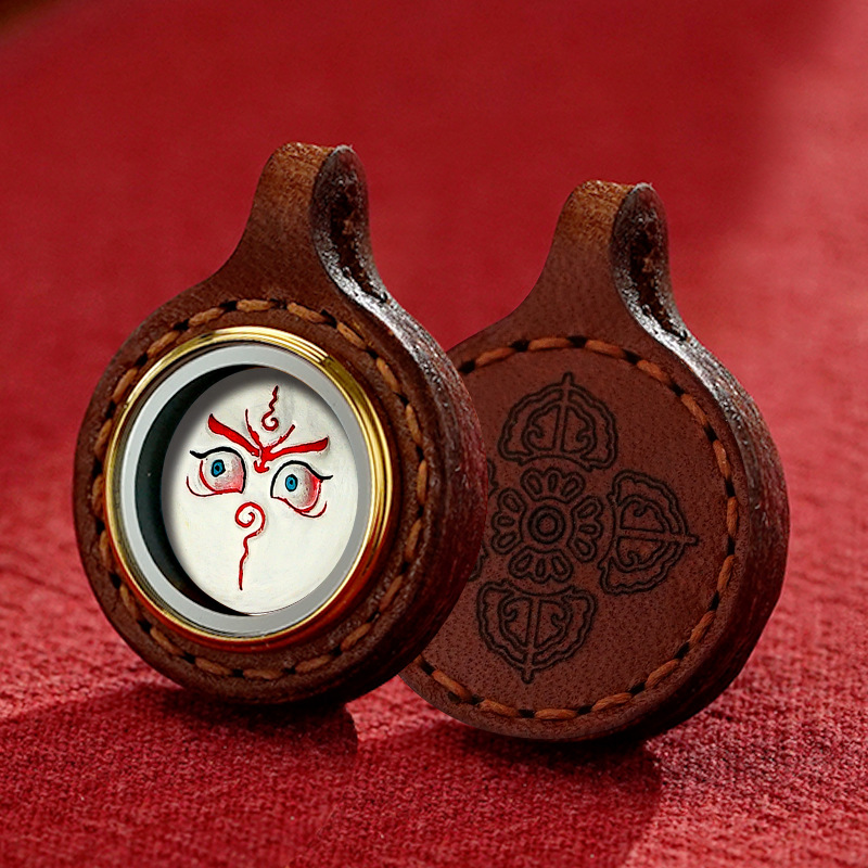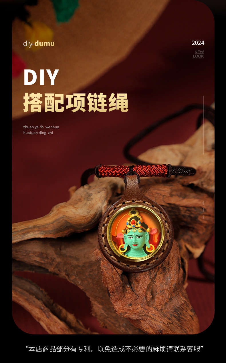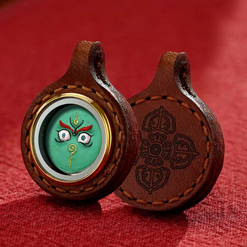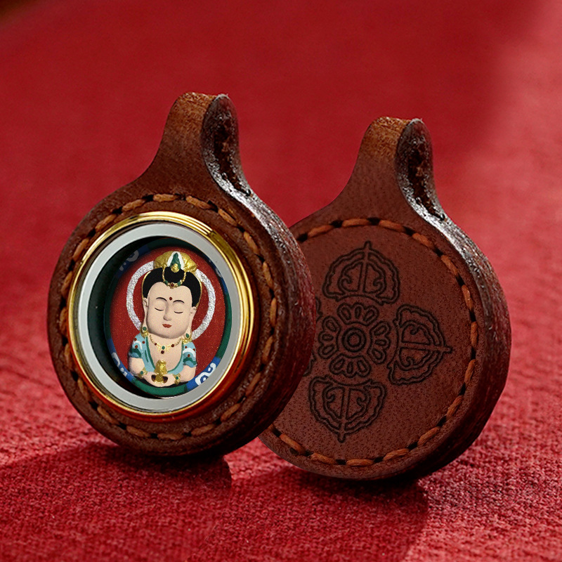 小皮壳立体手绘唐卡擦擦金色金刚杵棕色手工吊坠项坠黄财神民族风