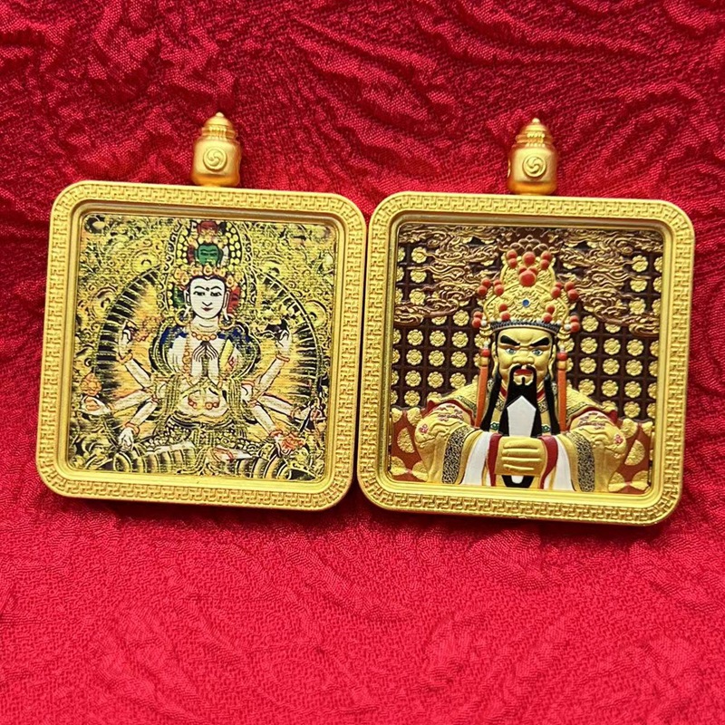 藏式唐卡五台山龙五爷立体纯铜嘎乌盒黑金八大守护随身吊坠子批发