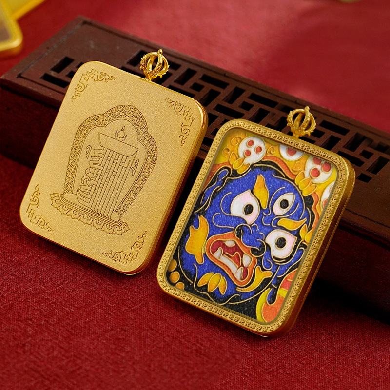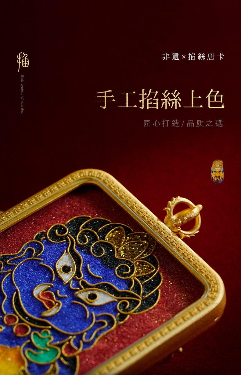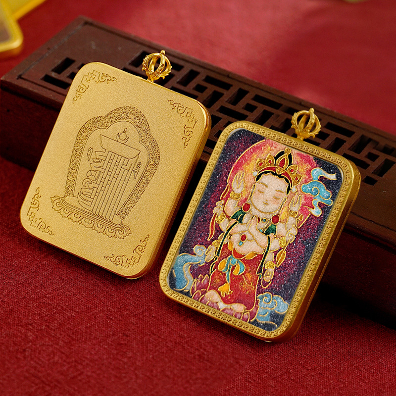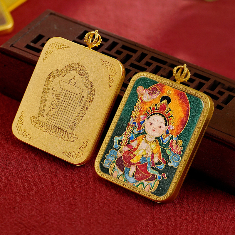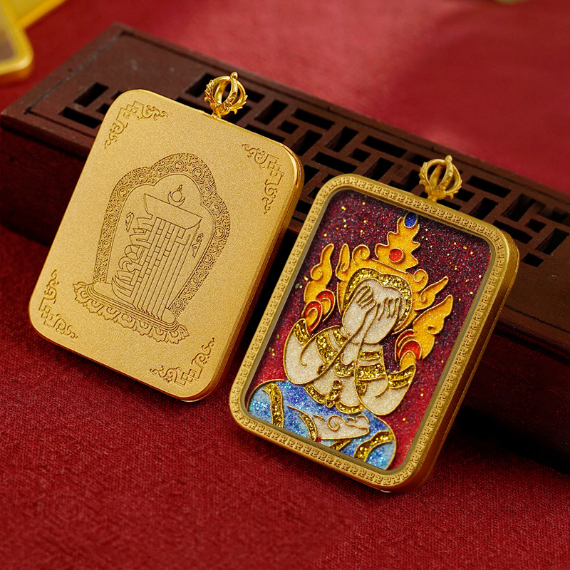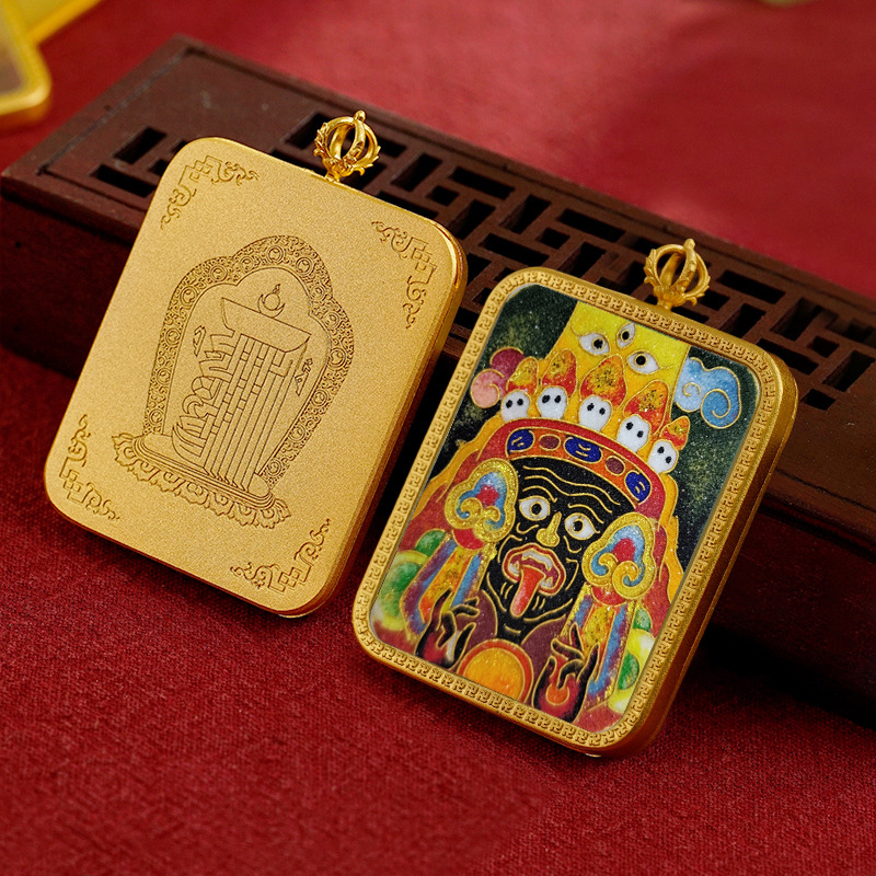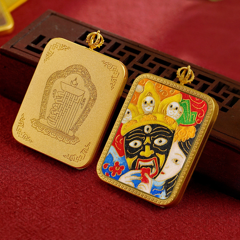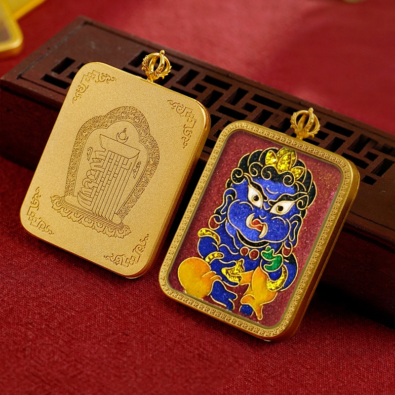 扎基拉姆手绘掐丝唐卡五爷大黑天黑财神绿度母DIY配件小唐卡吊坠