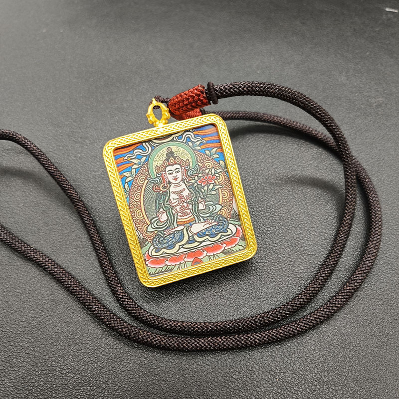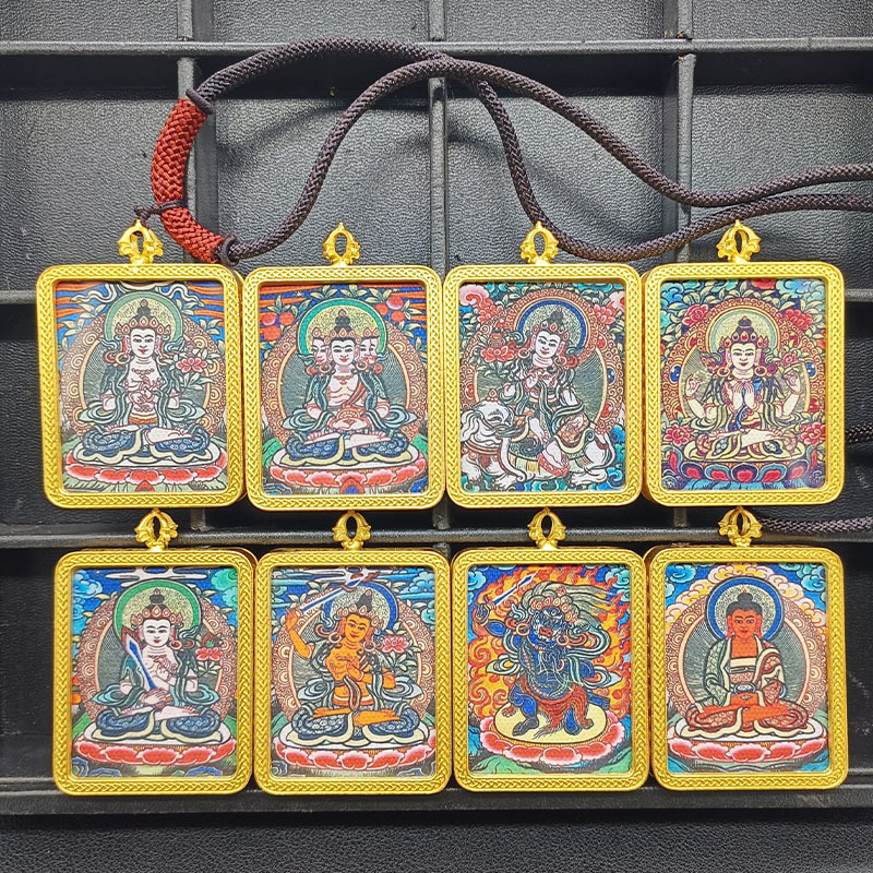 尼泊尔唐卡嘎呜盒八大守护神佛牌吊坠金色画盒随身挂件送挂绳批发