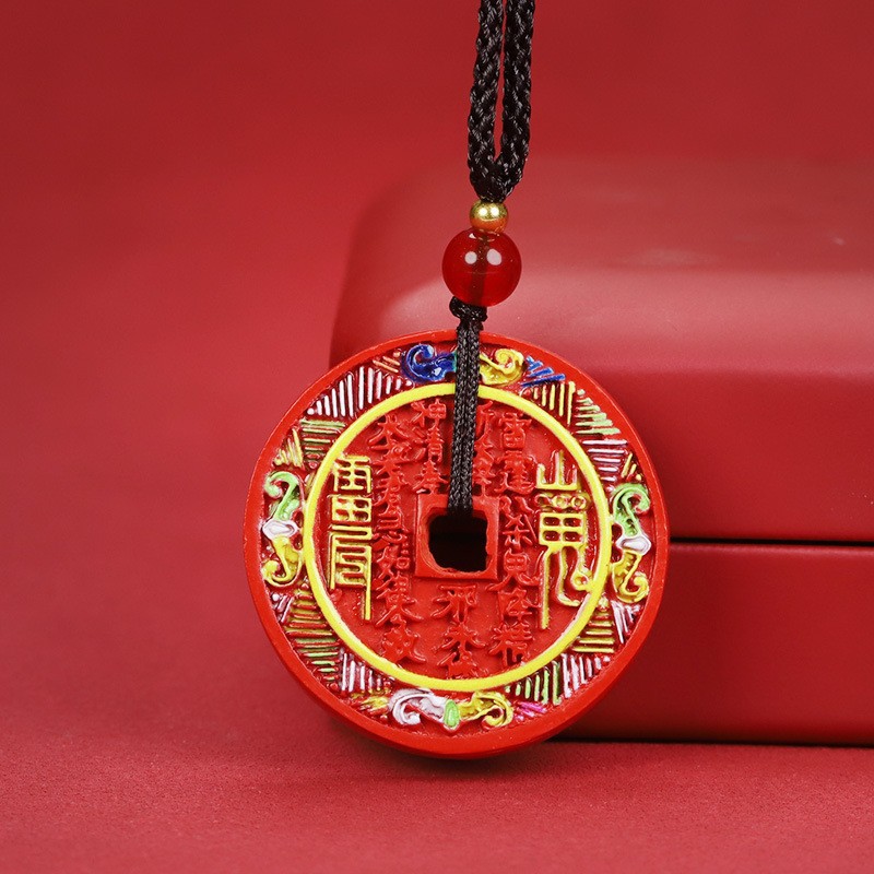 彩绘朱砂唐卡吊坠红砂生肖龙牌挂件平安牌无事牌直播货源批发