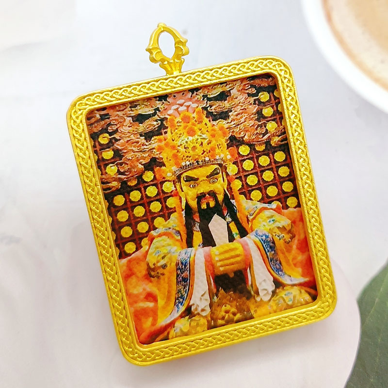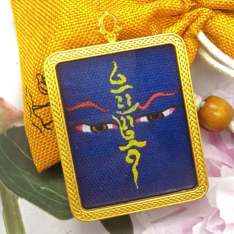 藏式唐卡嘎呜盒黄财神五路财神吊坠法眼文殊男女款项链送挂绳批发