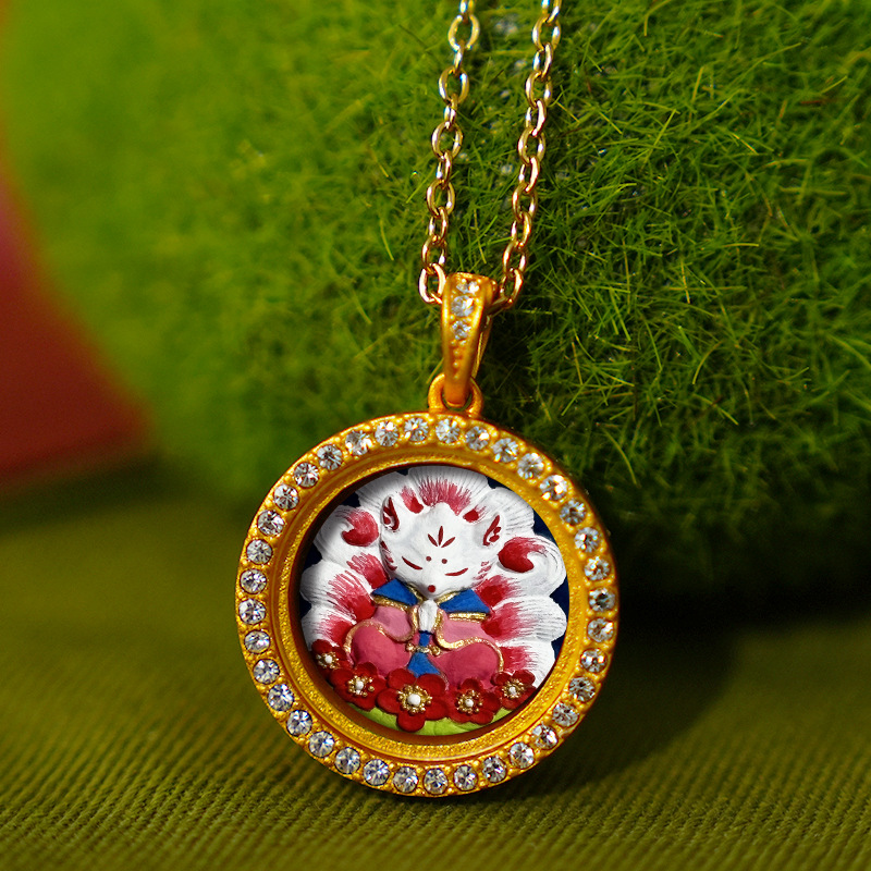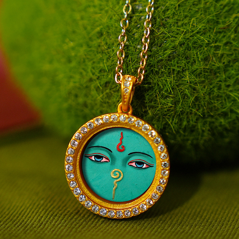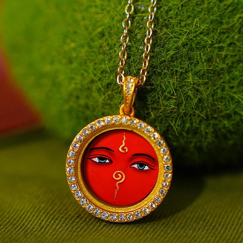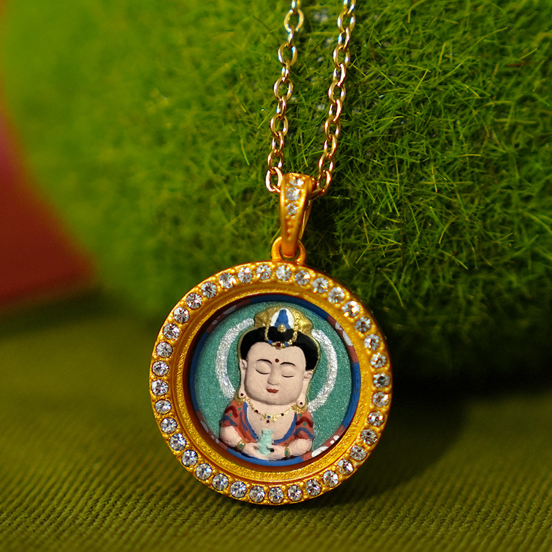 黄铜清韵圆形镶钻擦擦盒吊坠圆形本命佛大日如来千手观音唐卡项链