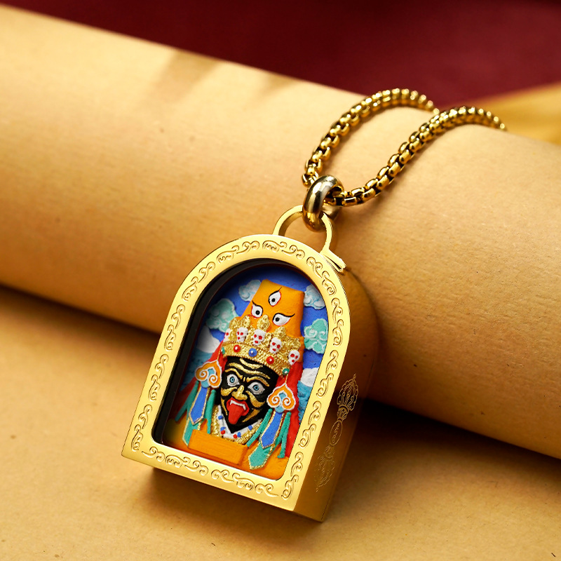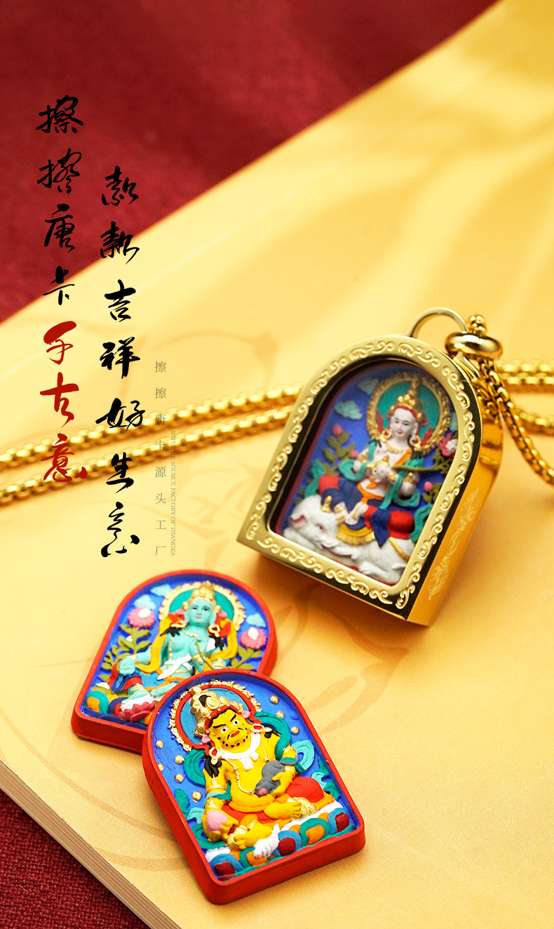 新非遗钛钢立体唐卡扎基拉姆黄财手工彩绘唐卡手绘擦擦牌吊坠挂件