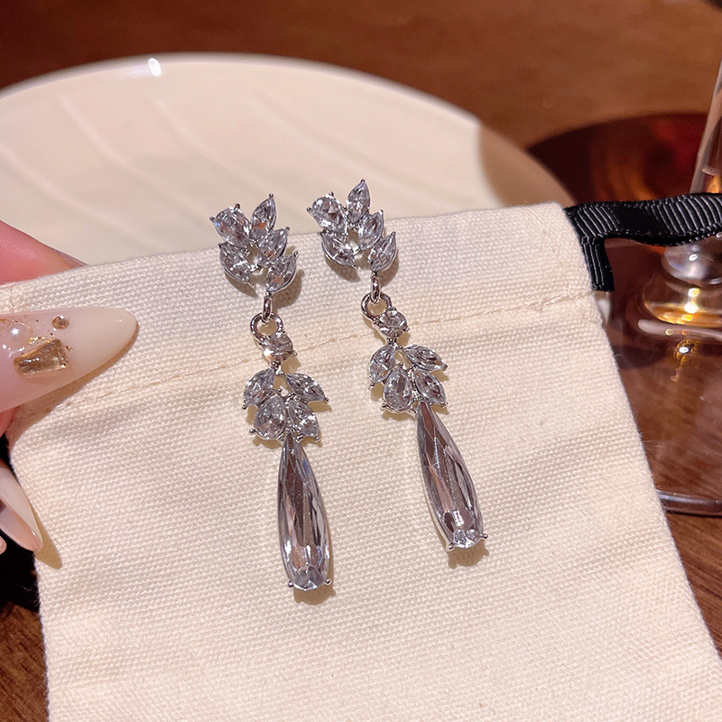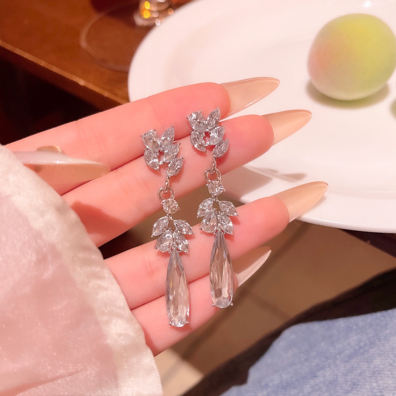 轻奢小众高级感麦穗水滴形耳钉女超闪水钻长款流苏耳环耳饰品批发