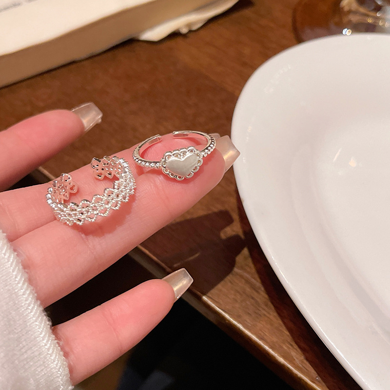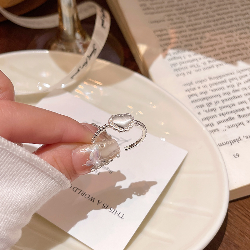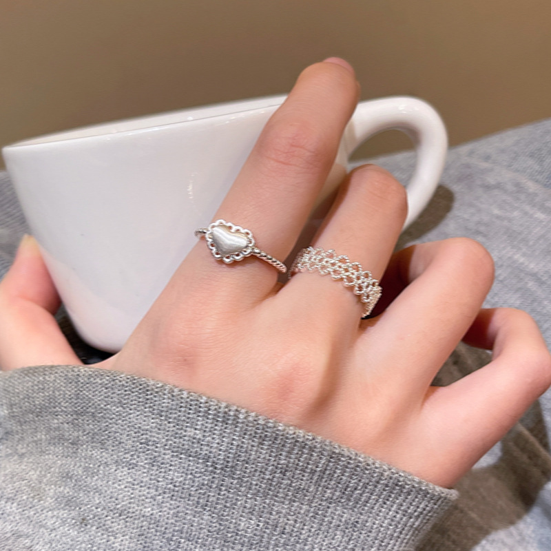 轻奢小众高级感简约拉丝爱心戒指女开口可调节网状食指戒网红指环