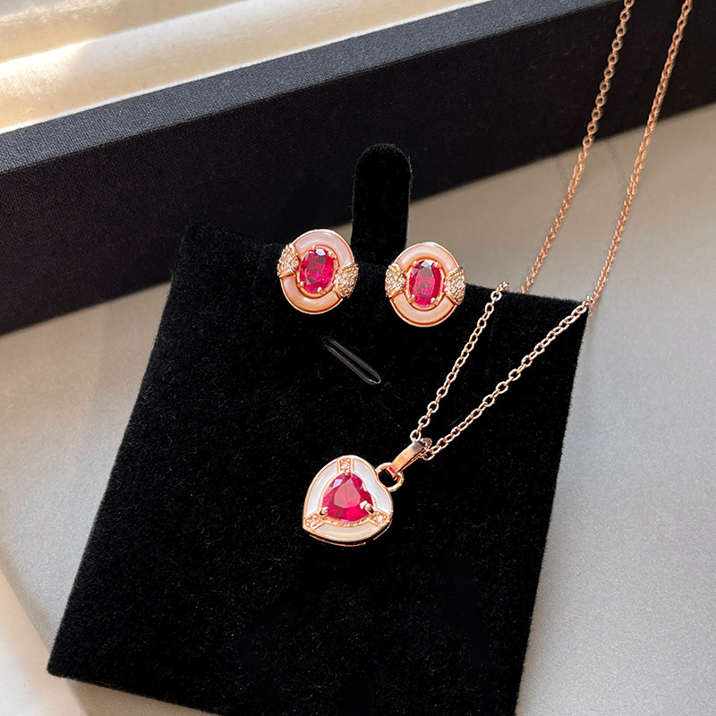 真金电镀5A级粉色锆石爱心项链女925纯银针百搭时尚高级感耳钉