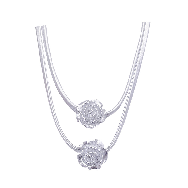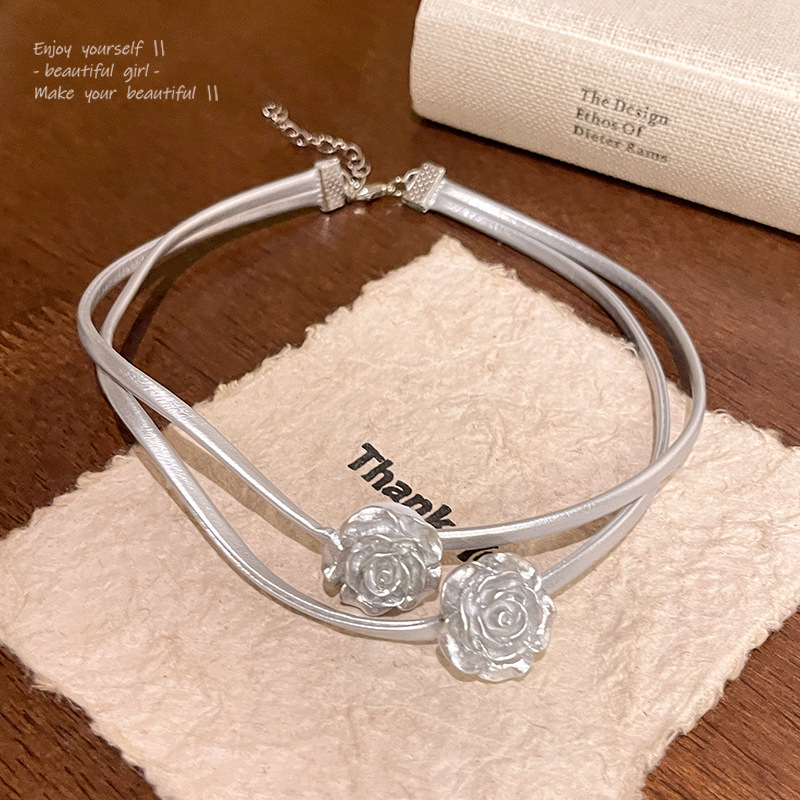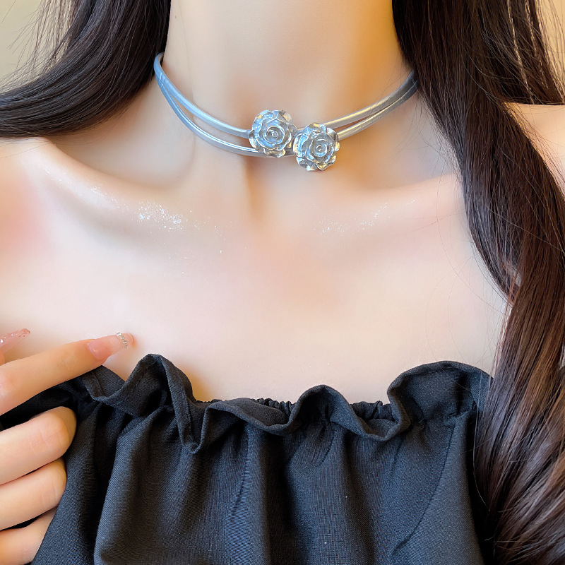 温柔百搭气质双层叠戴银色玫瑰花锁骨链轻奢小众高级感花朵项链女