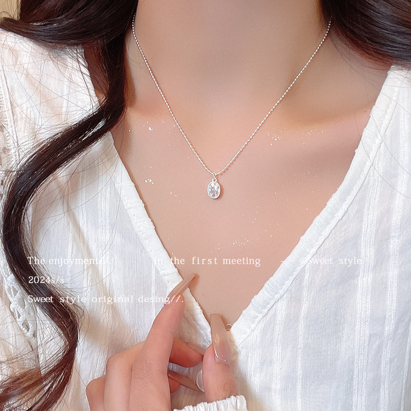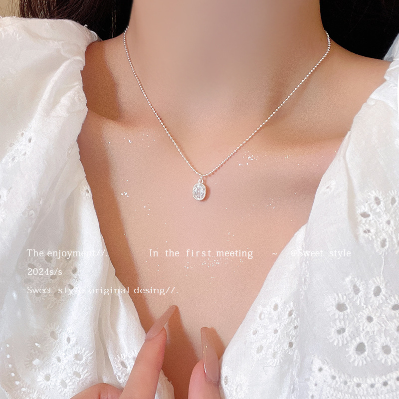 港风复古简约经典款椭圆锆石吊坠项链女小众冷淡风锁骨链网红颈链