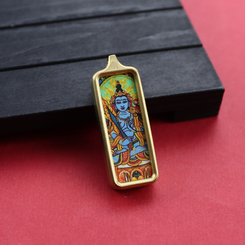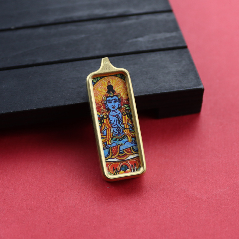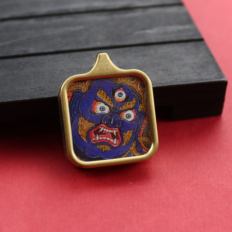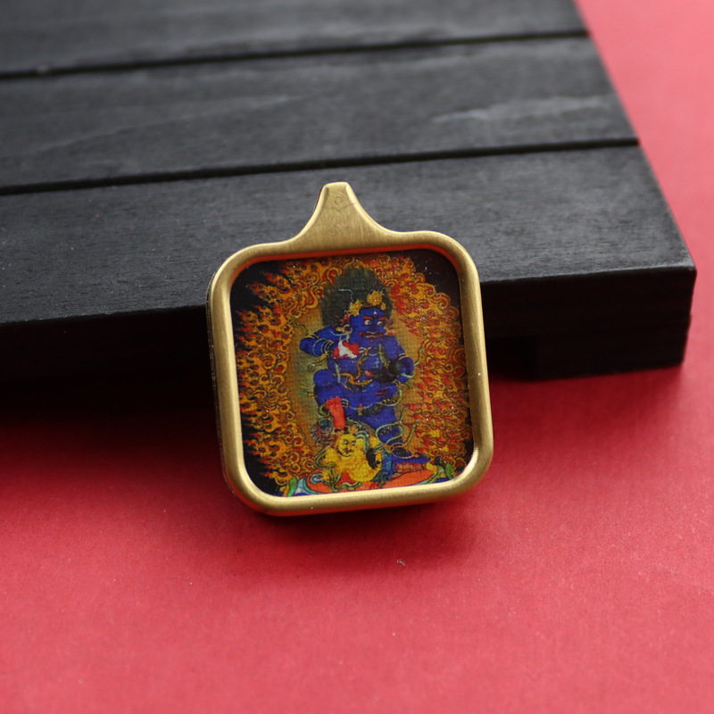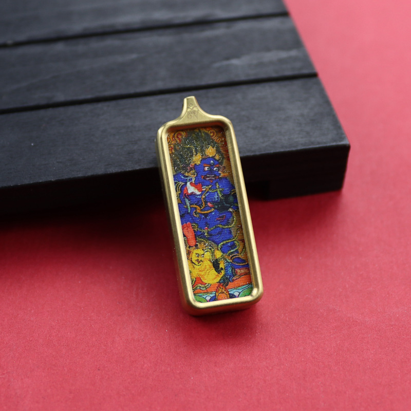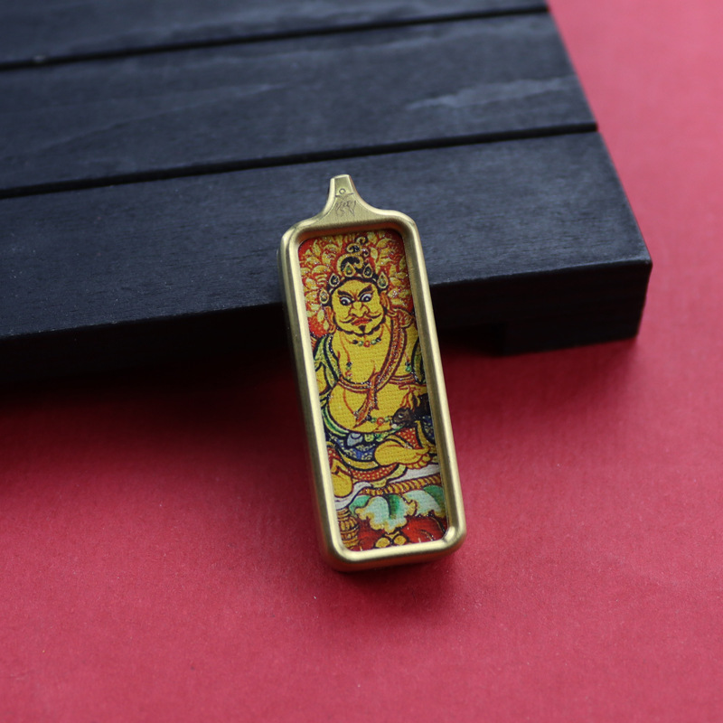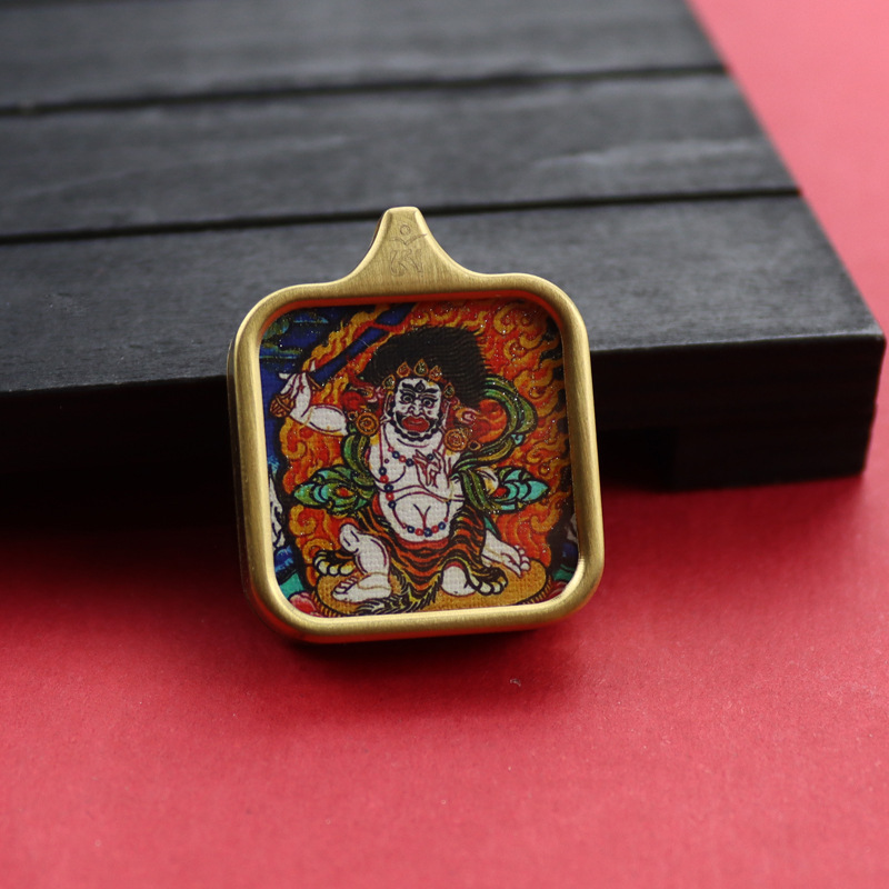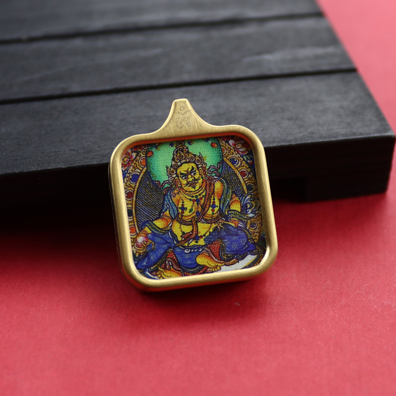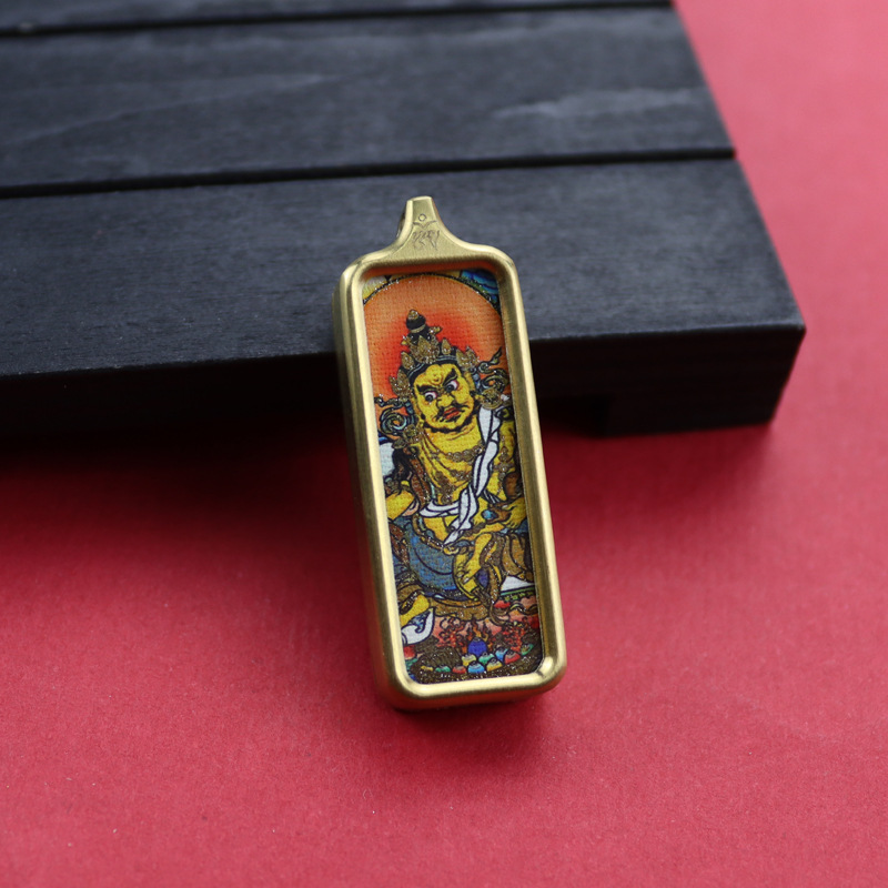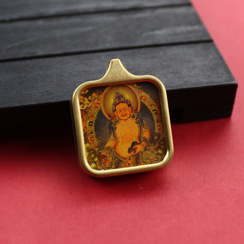 藏式唐卡吊坠手绘描金八大守护神黄财神扎基拉姆钛钢方形唐卡吊坠