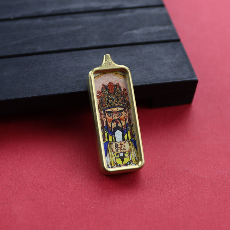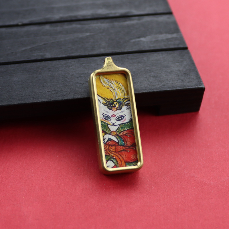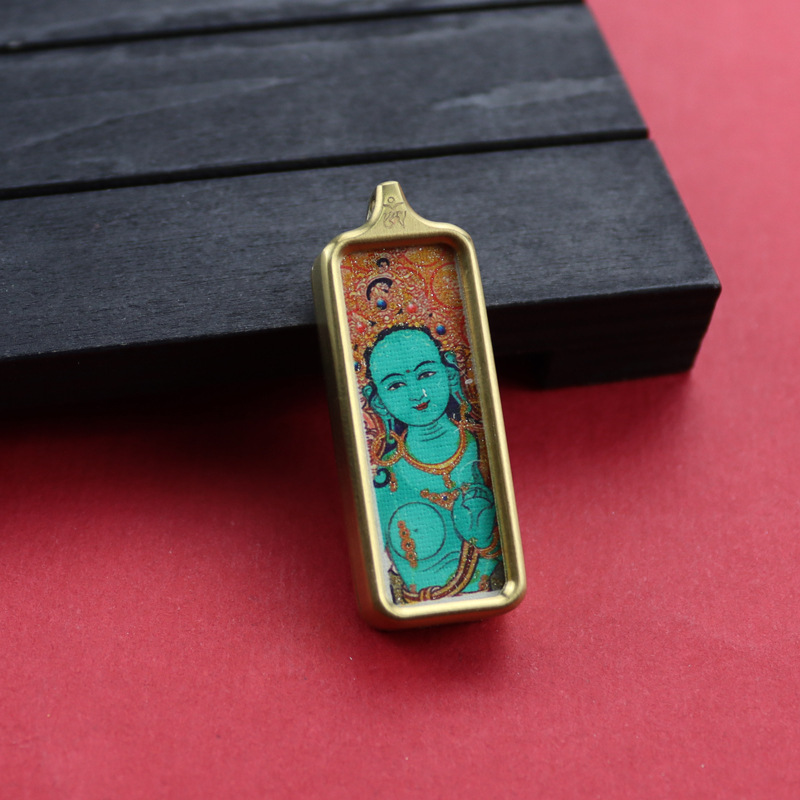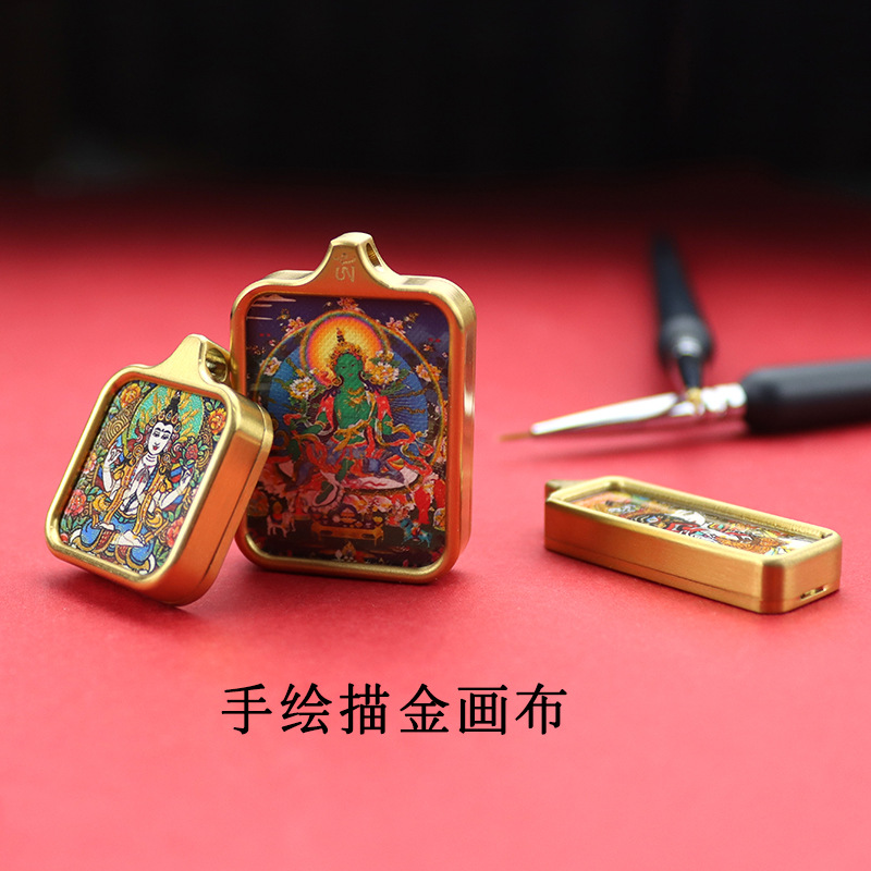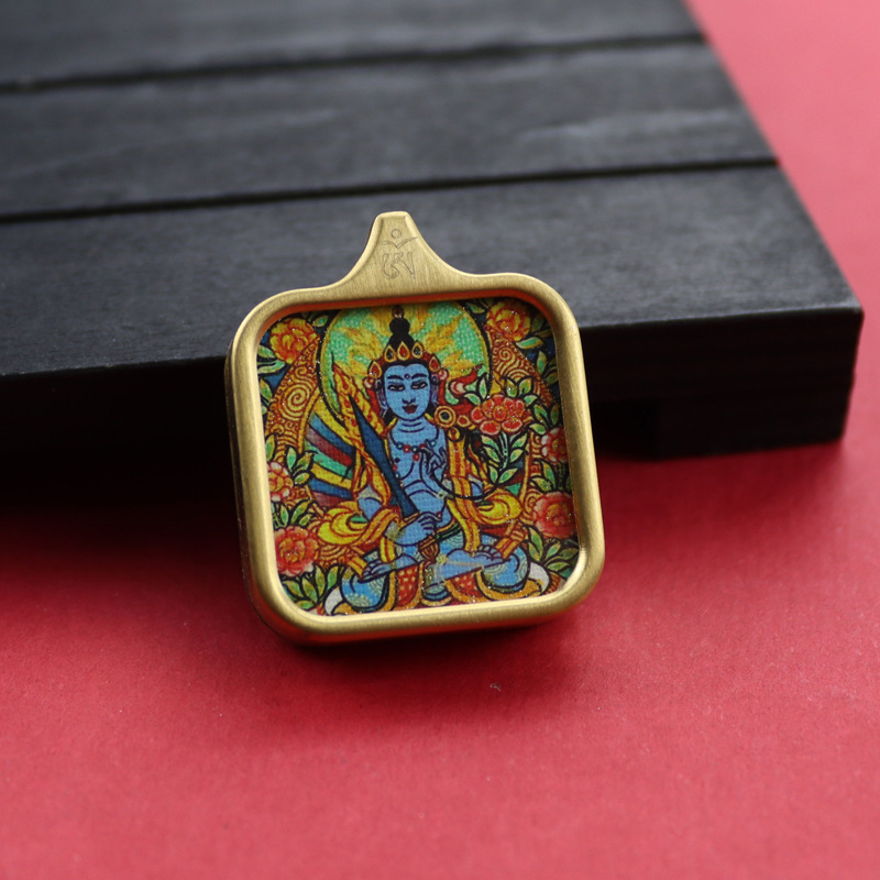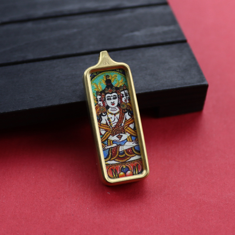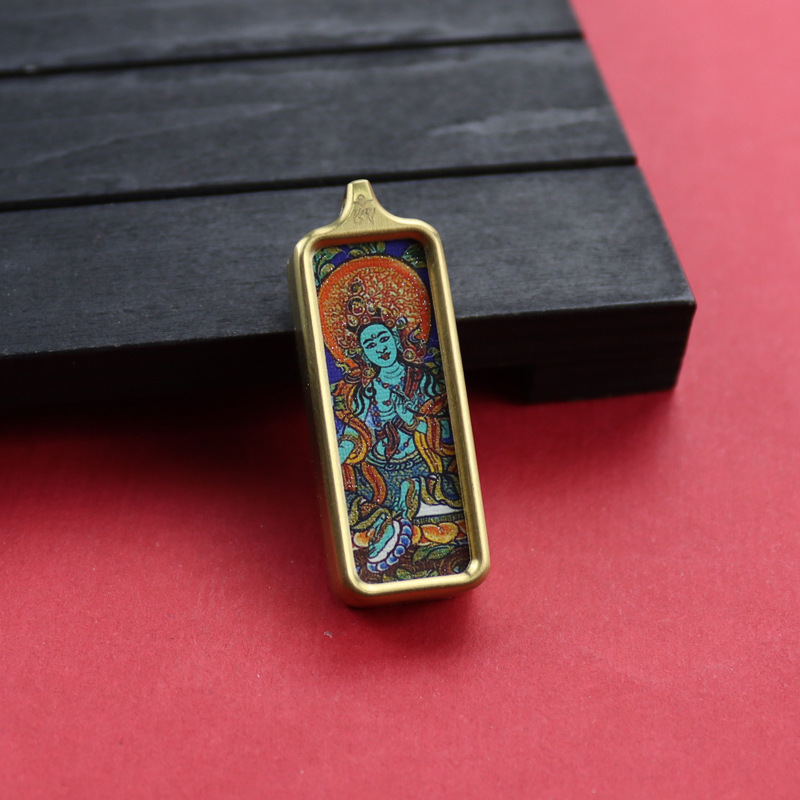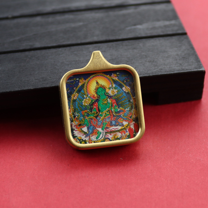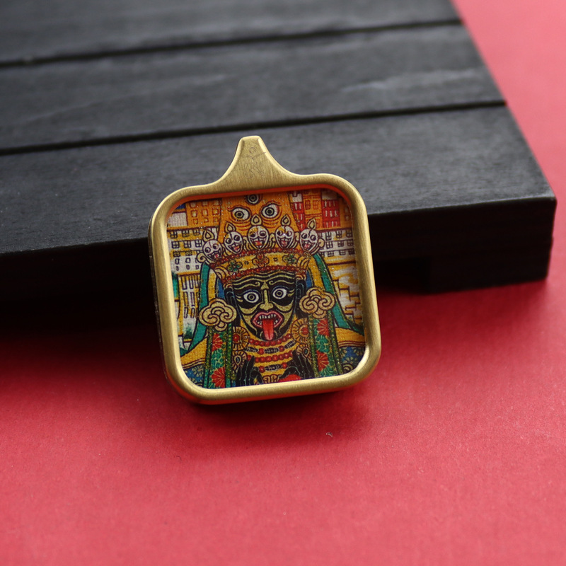 藏式唐卡吊坠手绘描金八大守护神黄财神扎基拉姆钛钢方形唐卡吊坠