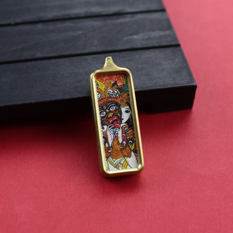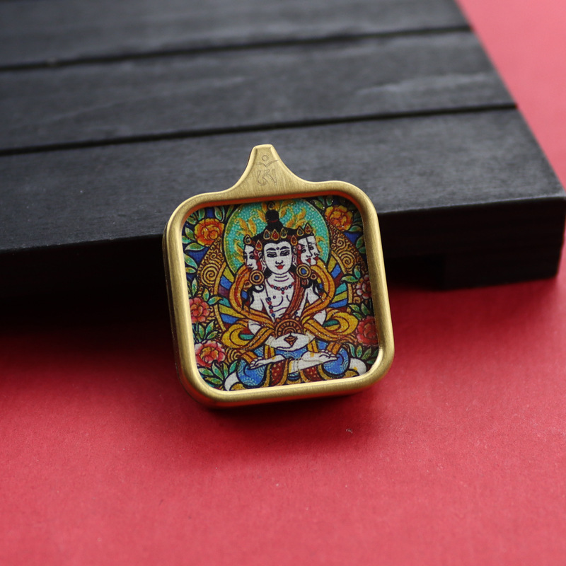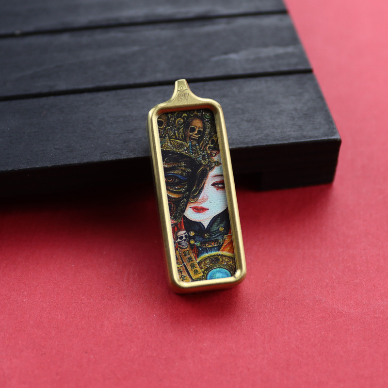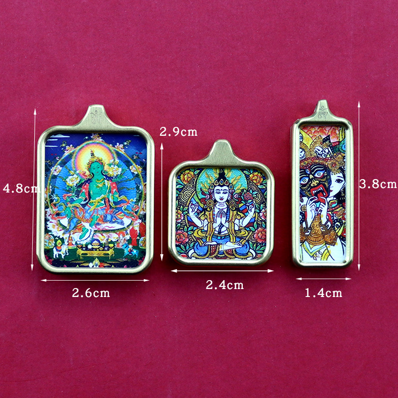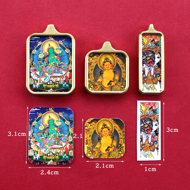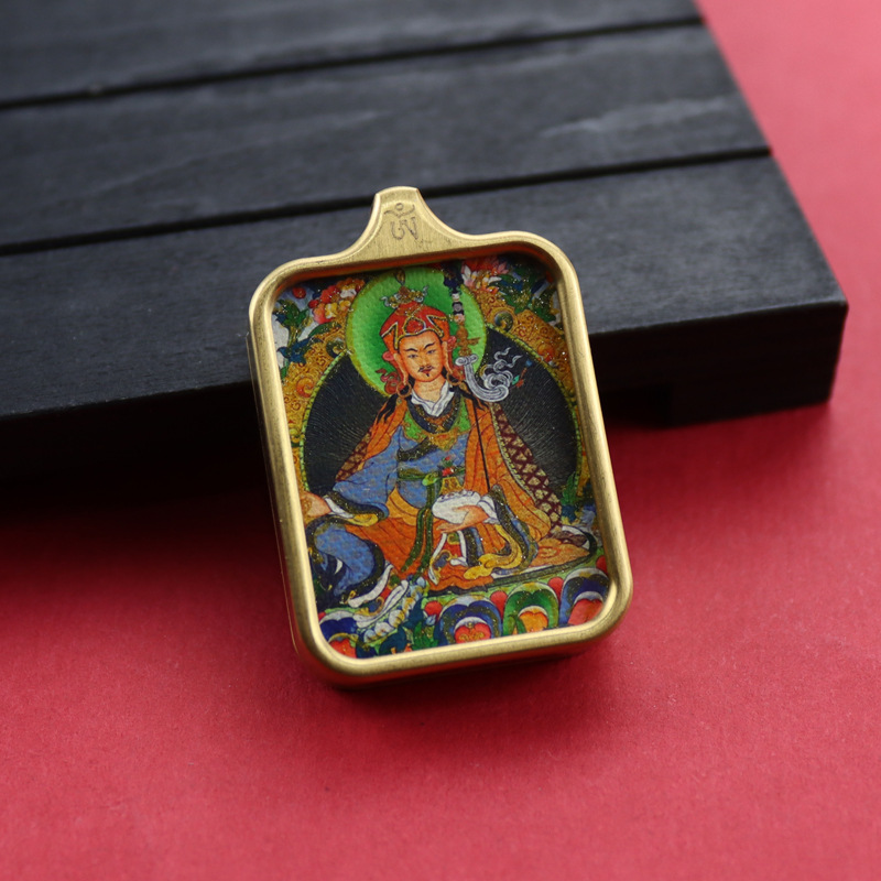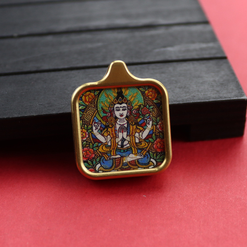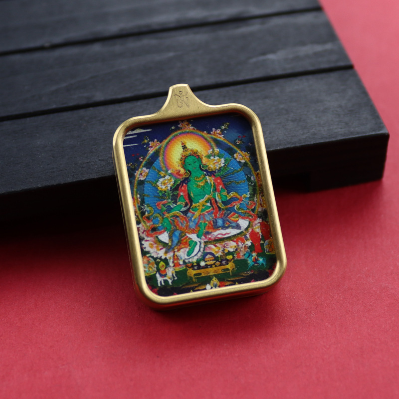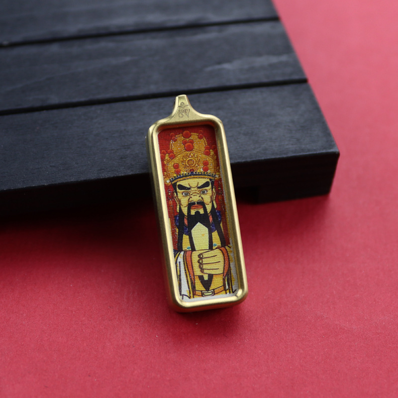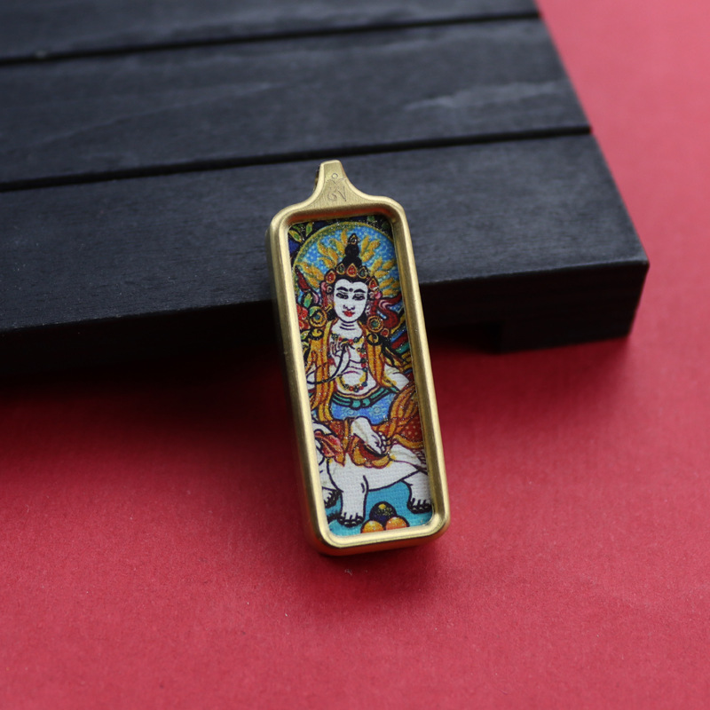 藏式唐卡吊坠手绘描金八大守护神黄财神扎基拉姆钛钢方形唐卡吊坠