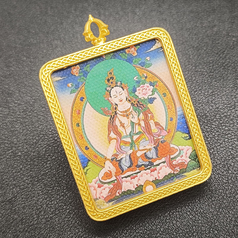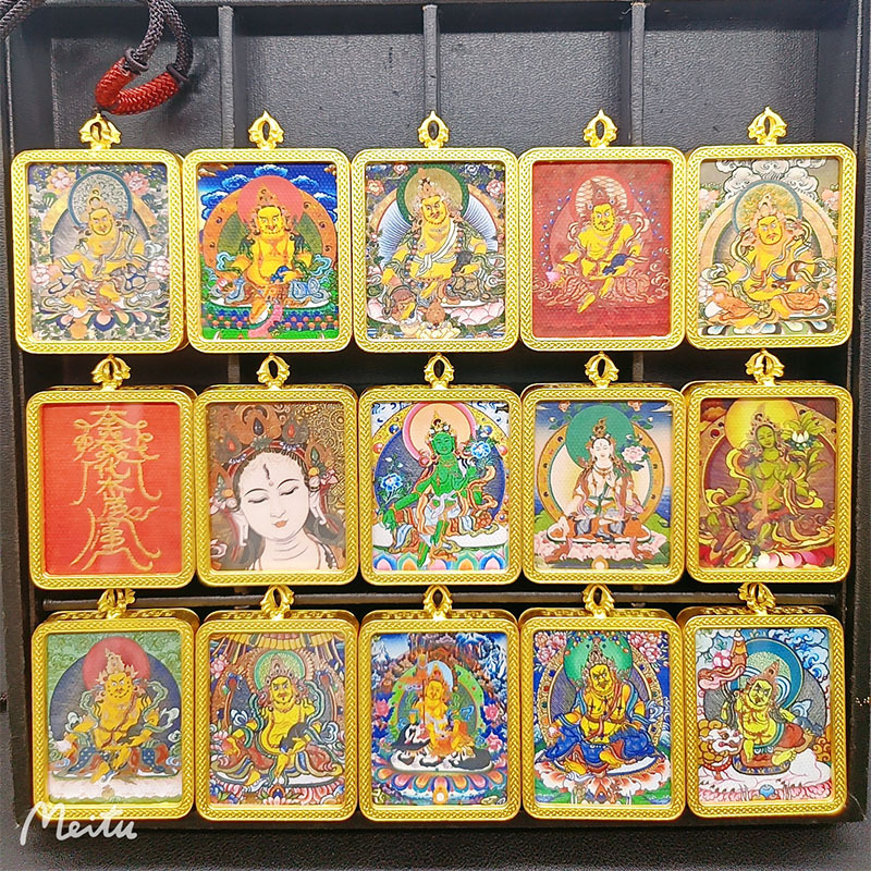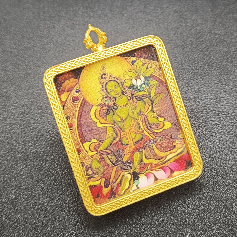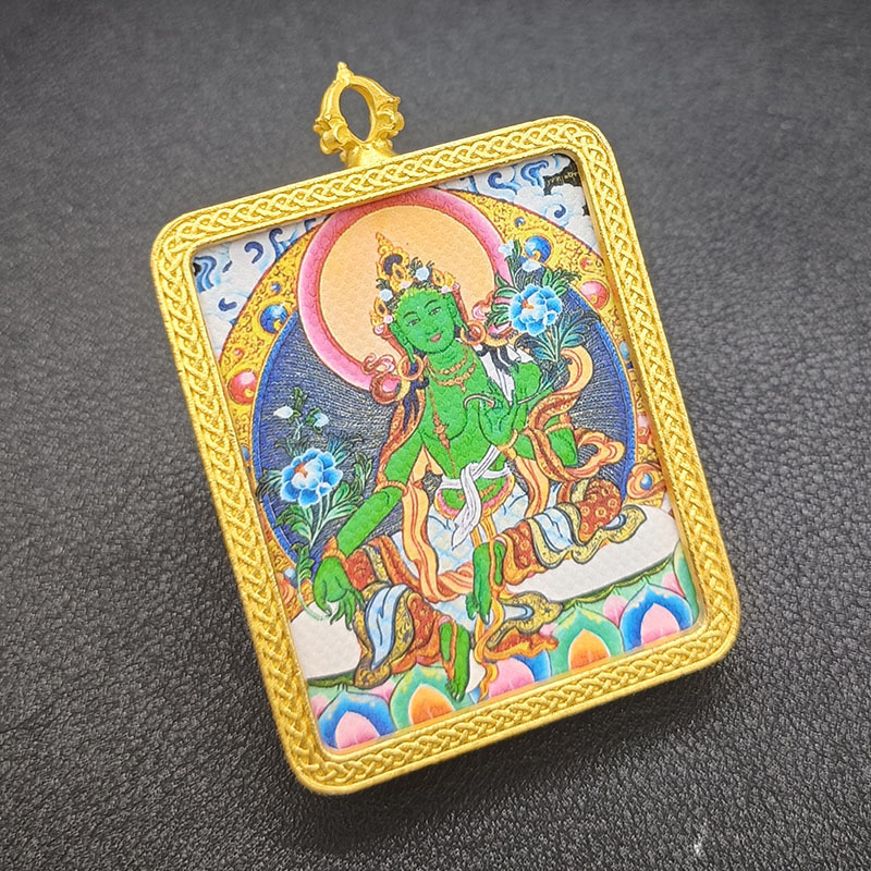 尼泊尔唐卡嘎呜盒黄财神金色大号吊坠绿度母白度母男女通用款挂件