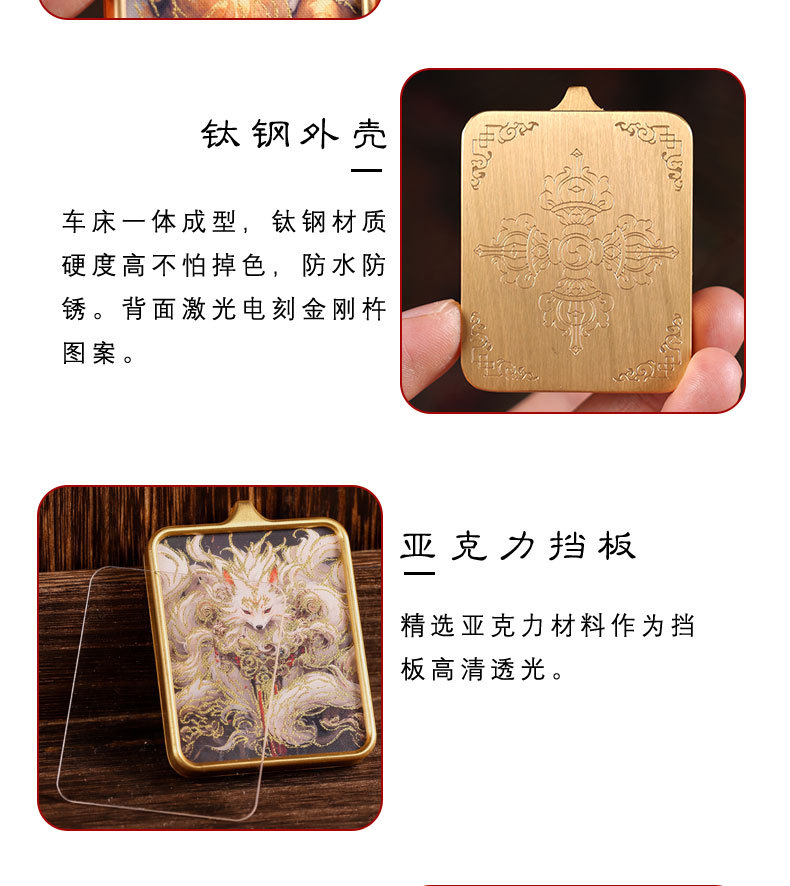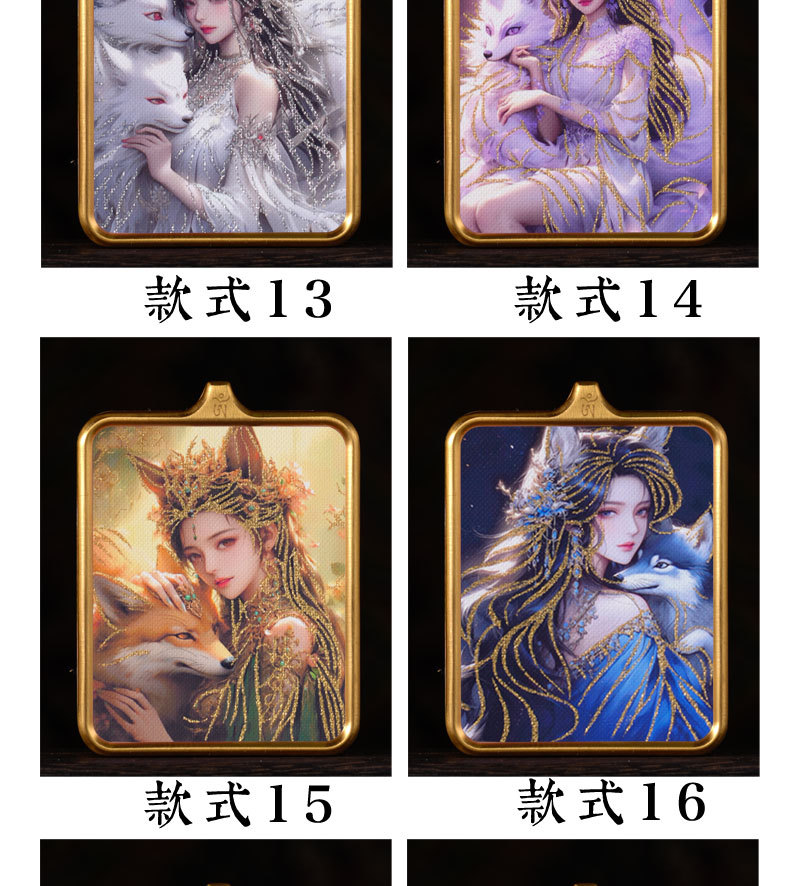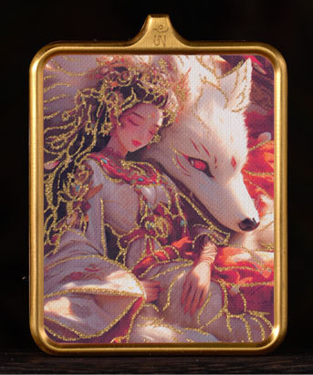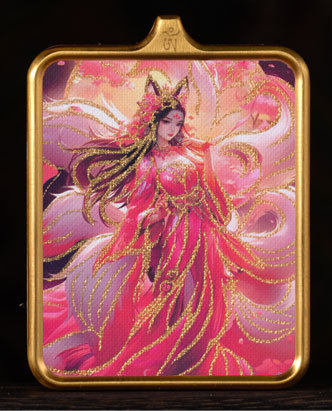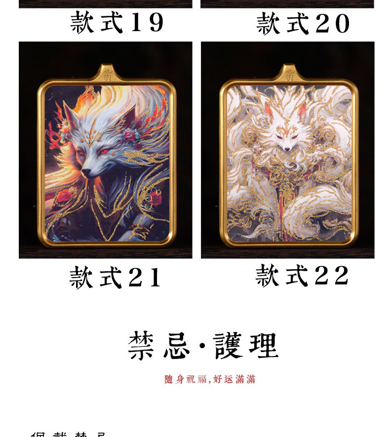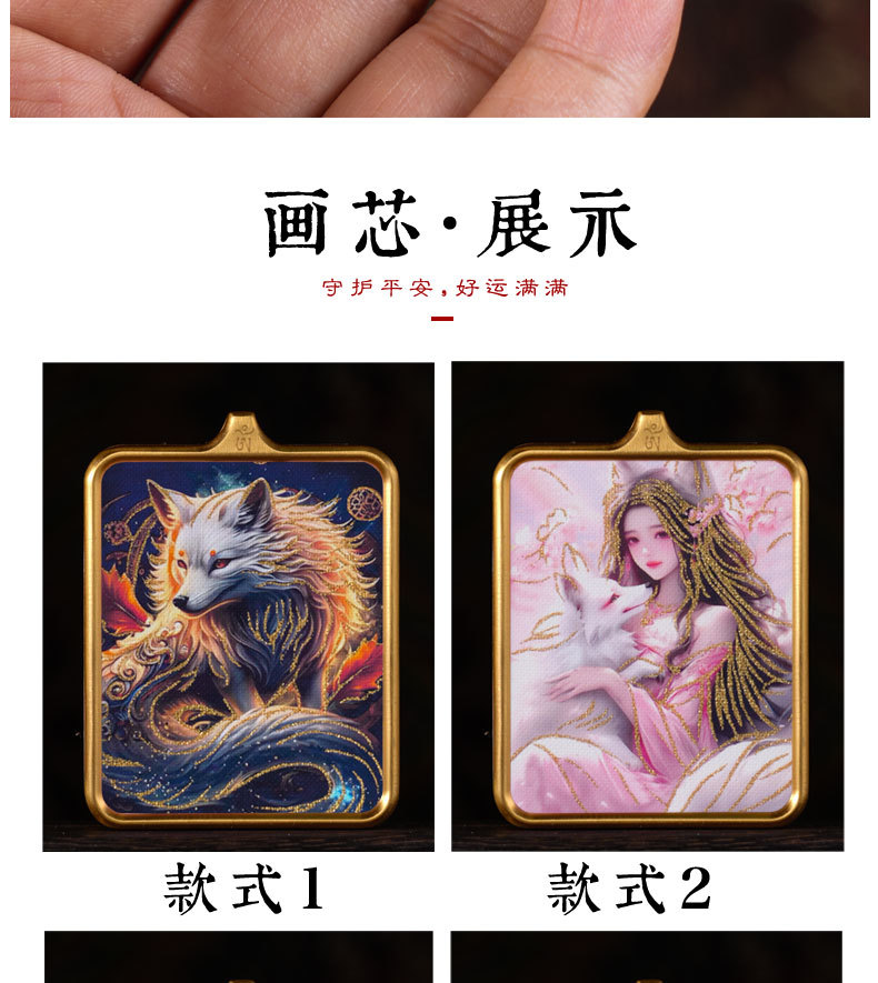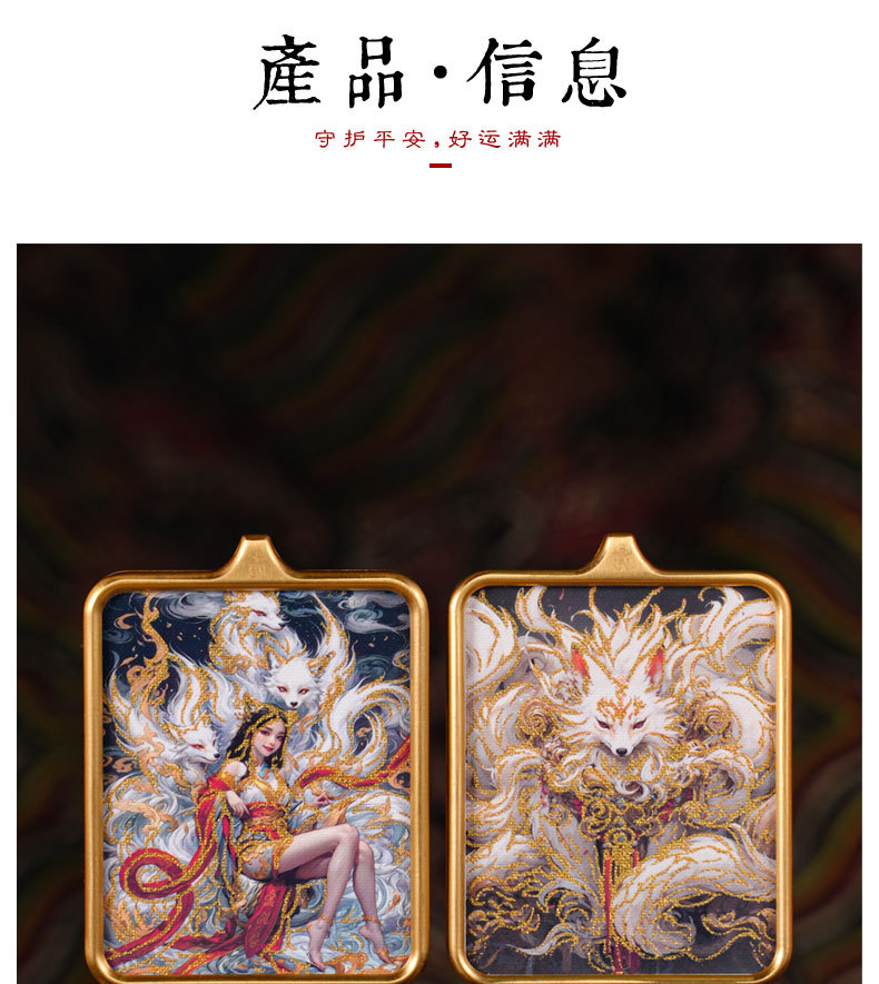 新高档藏式唐卡手工编织手绘彩绘版九尾狐狐方牌吊坠正桃花人缘