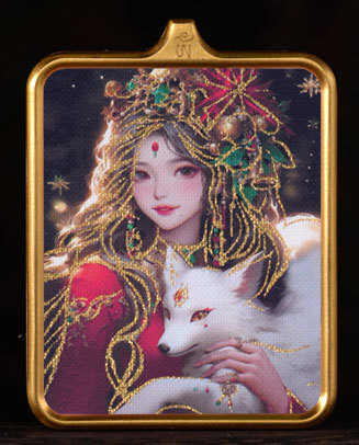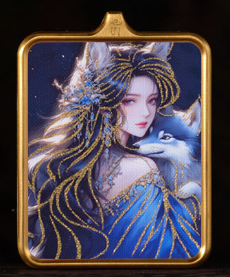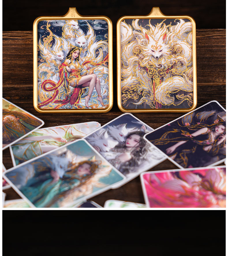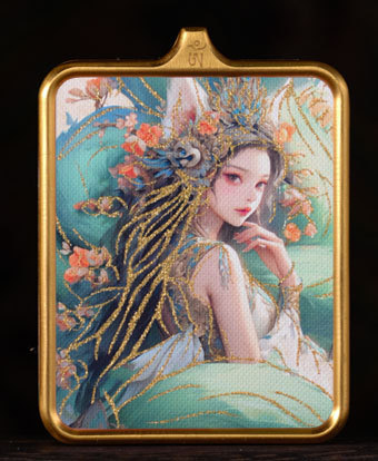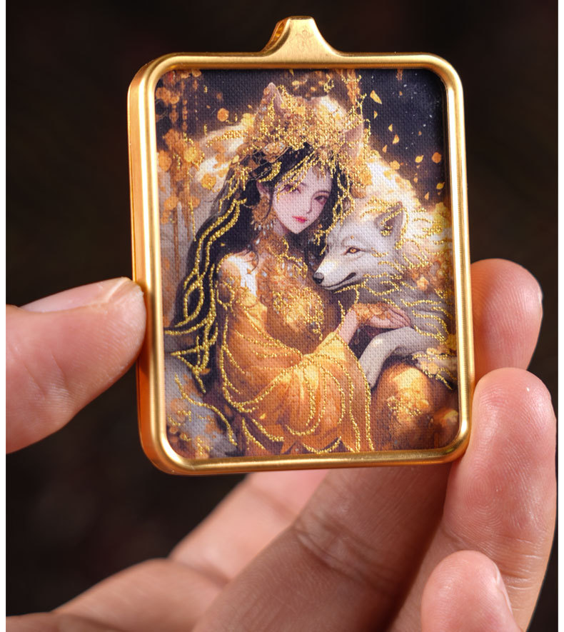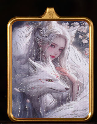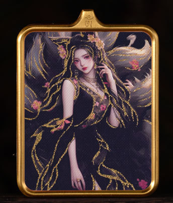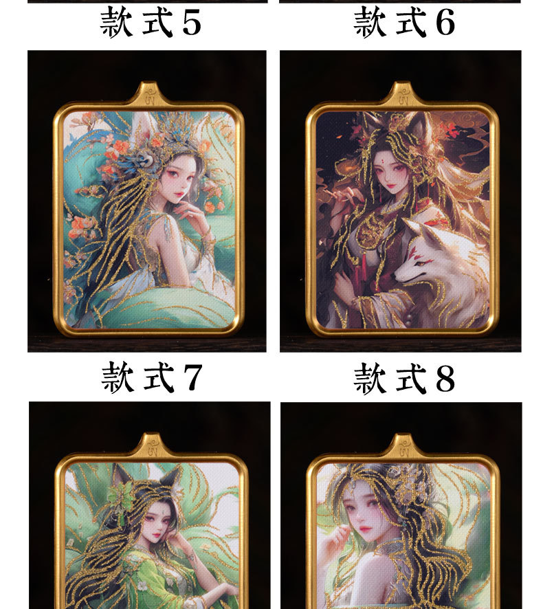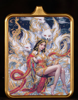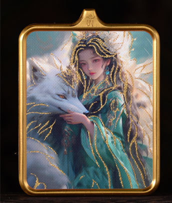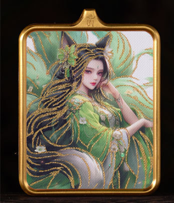 新高档藏式唐卡手工编织手绘彩绘版九尾狐狐方牌吊坠正桃花人缘