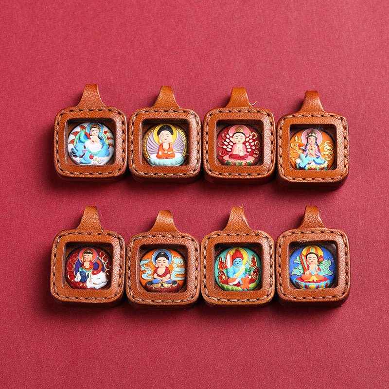 擦擦唐卡扎基拉姆八大守护神迷你立体唐卡藏传手工彩绘法眼吊坠国