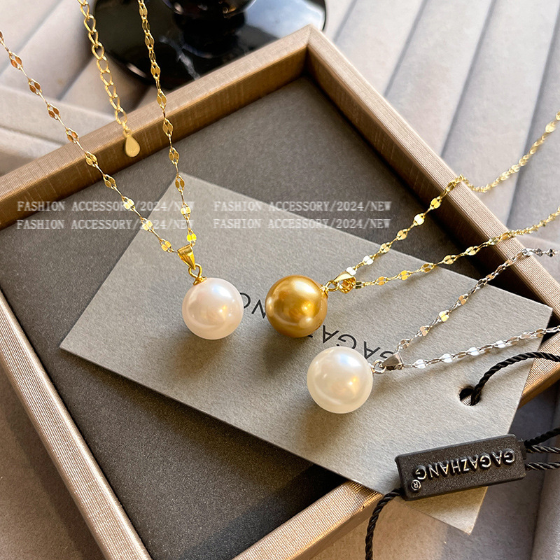真金电镀施家澳白珍珠项链女韩国爆款经典高级感锁骨链毛衣链颈链