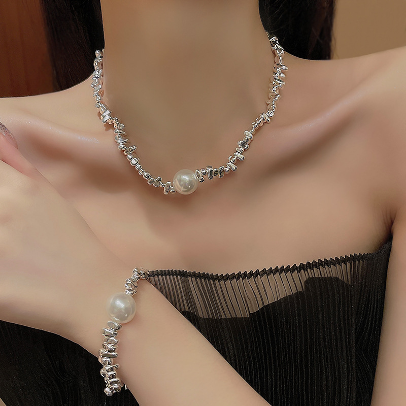 网络爆款碎银几两项链ins风轻奢小众百搭不规则链条珍珠手链套装