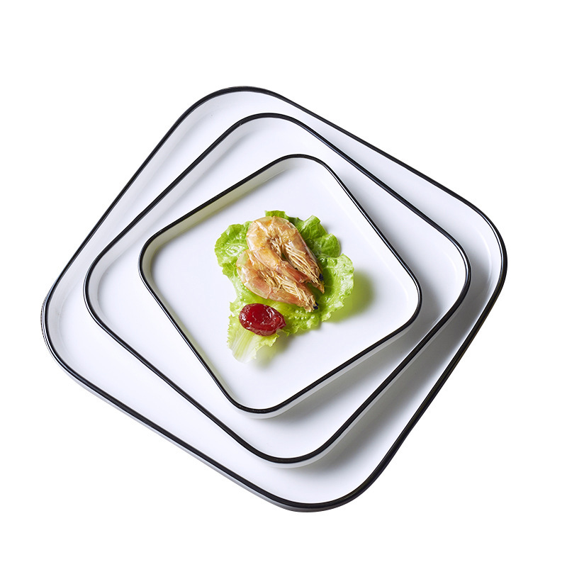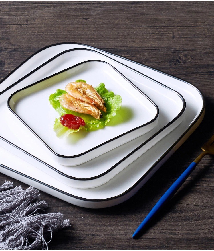 ins北欧简约正方形牛排意面盘 家用西餐手绘陶瓷水果餐盘烘焙盘