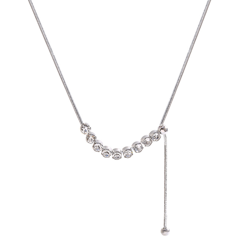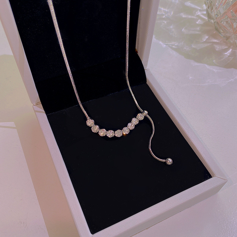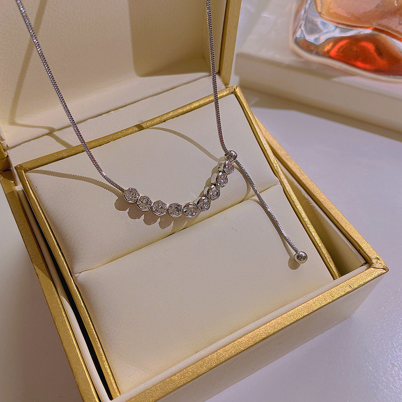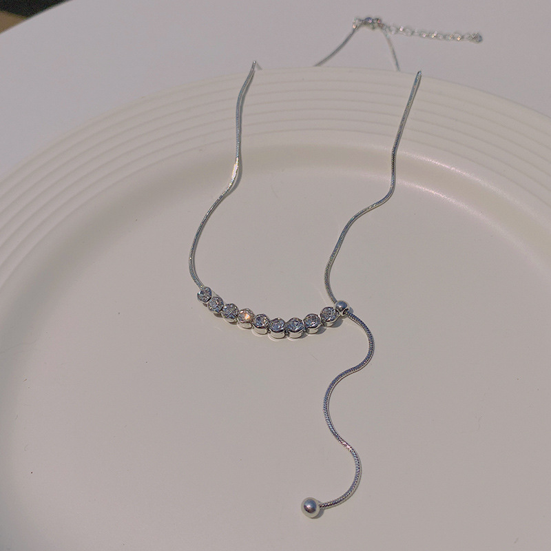 light luxury minority advanced design pull-out zircon necklace ins style simple temperamental all-match clavicle chain wholesale