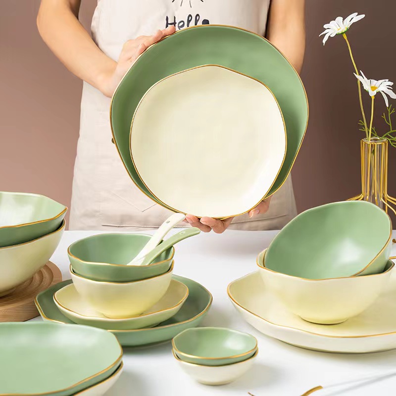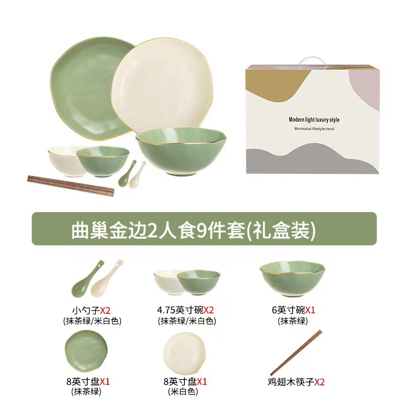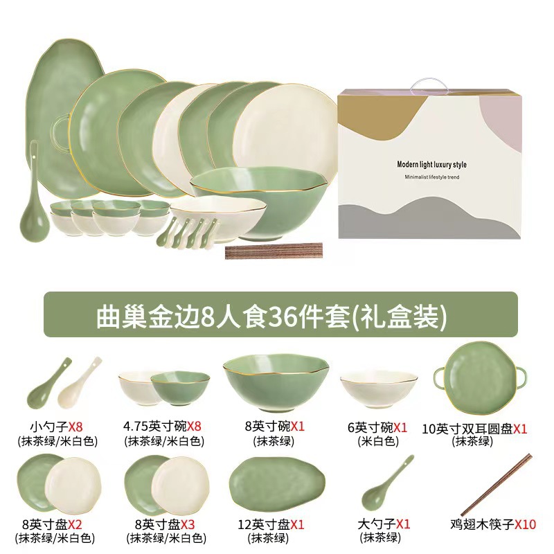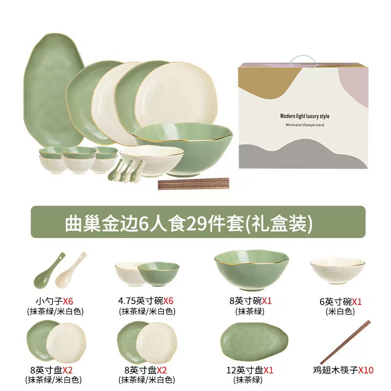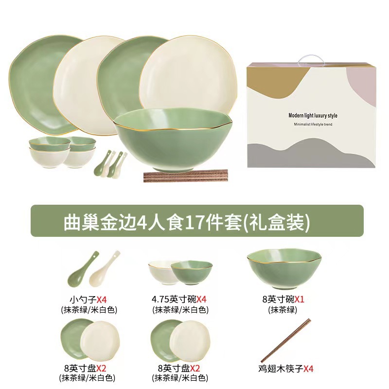 北欧风格家用陶瓷盘碗碾组合餐具套装 餐厅创意高档碗盘礼盒套装