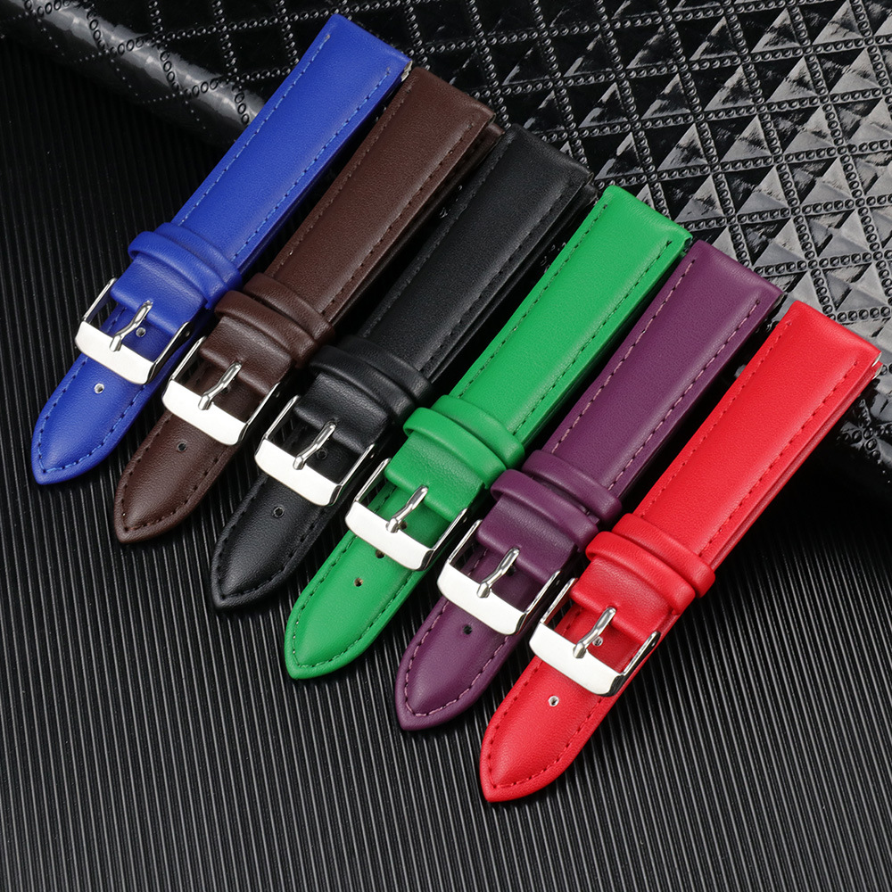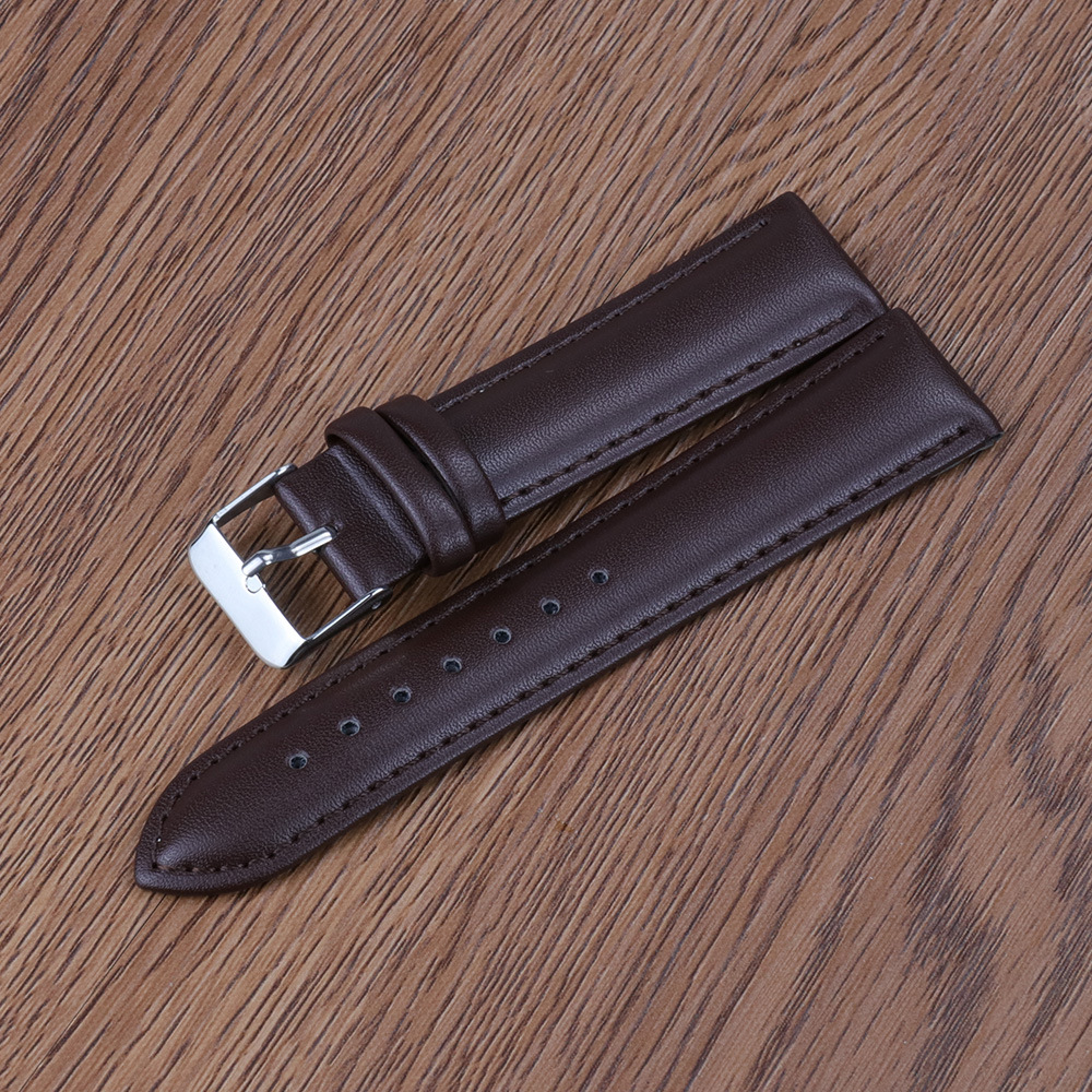 爆款平纹表带防水男女针扣耐用柔软浅棕皮表带厂家批发手表配件