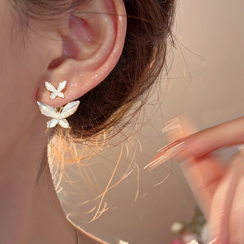 轻奢小众超仙气质百搭蝴蝶耳环高级设计感后挂式耳钉网红同款耳饰