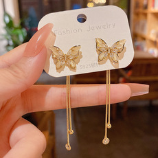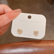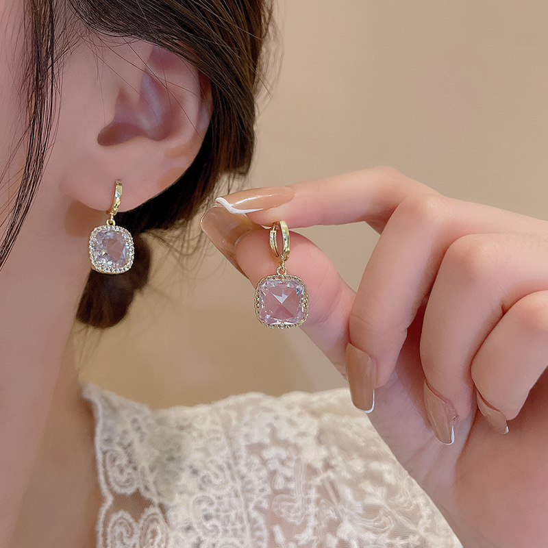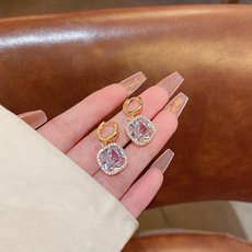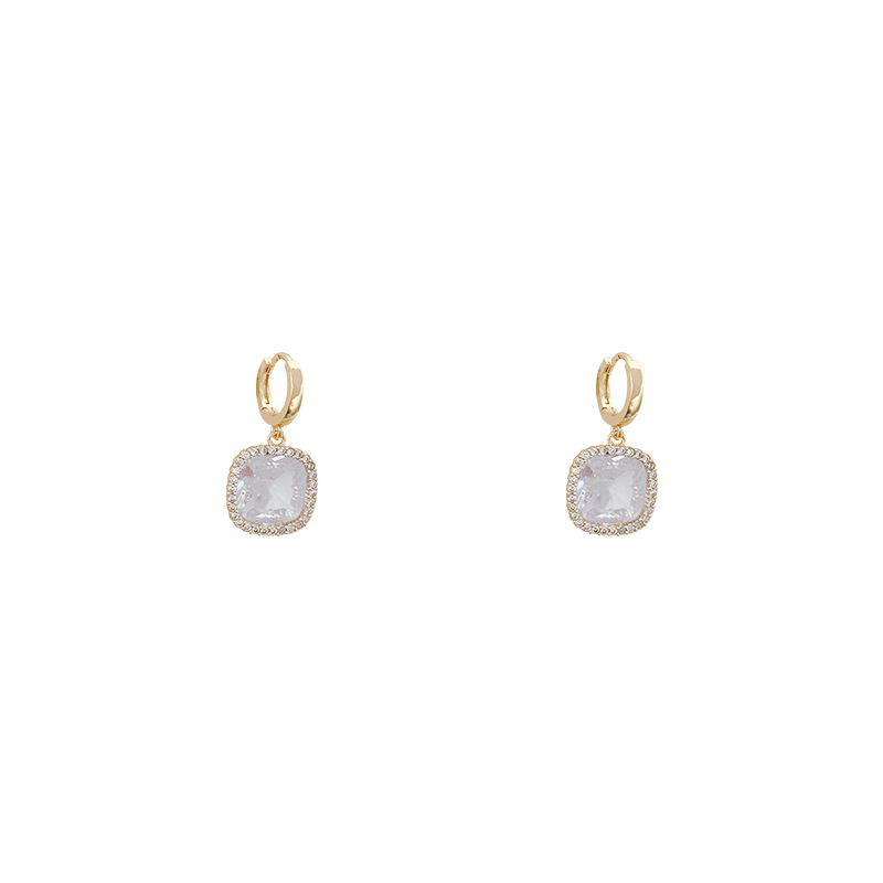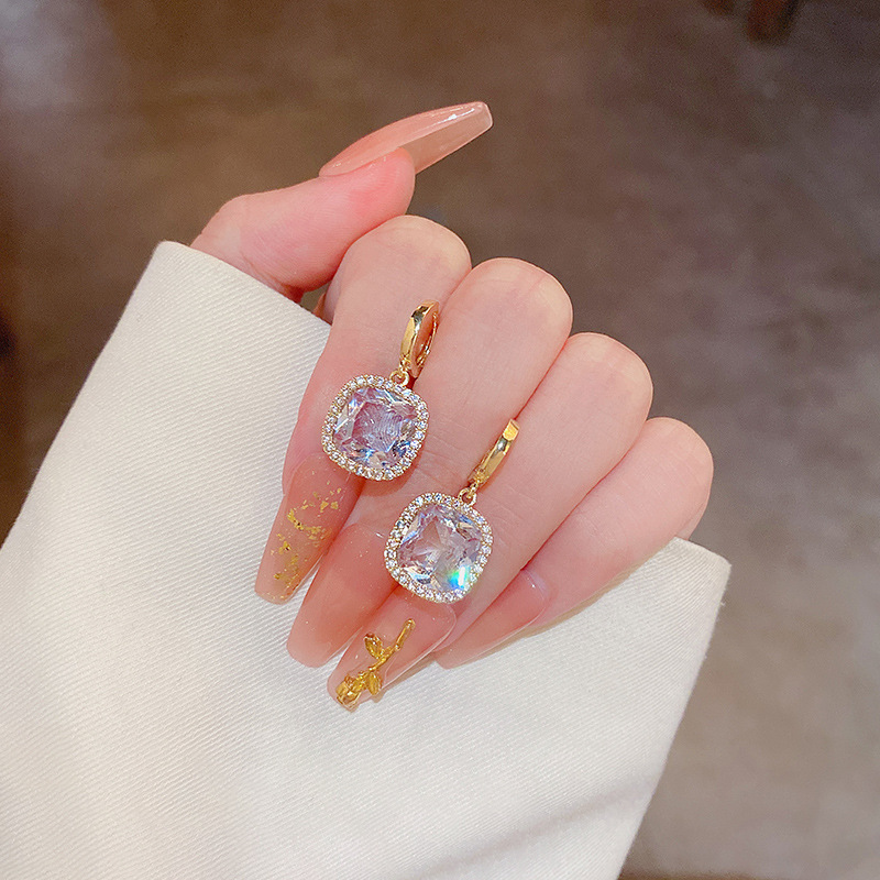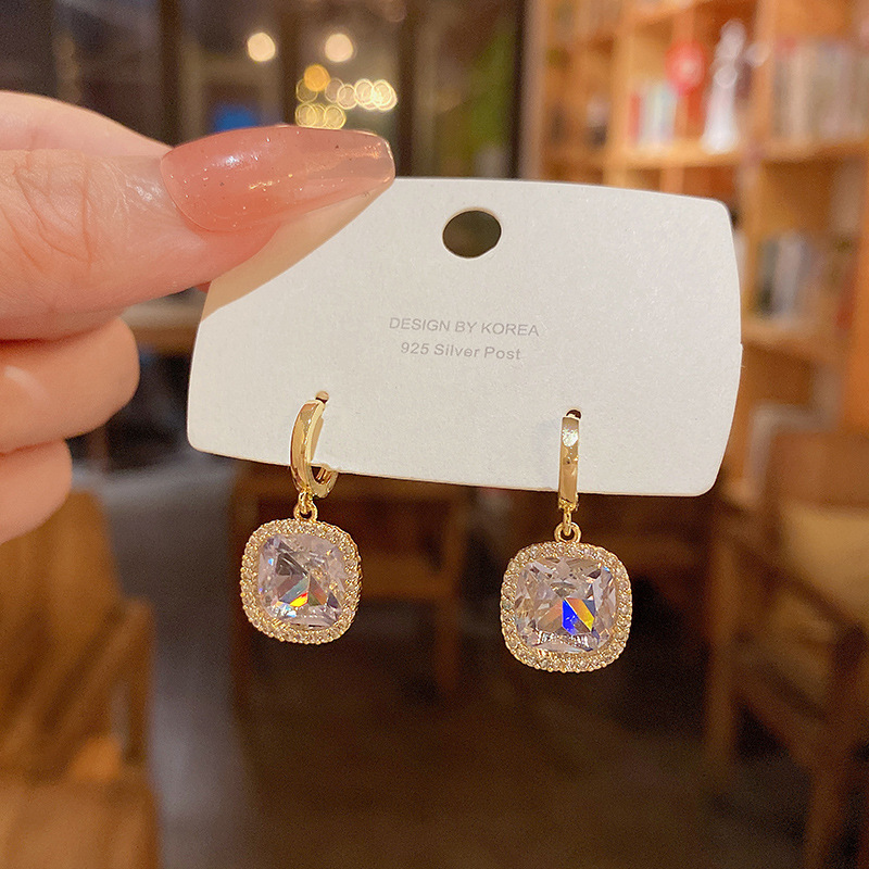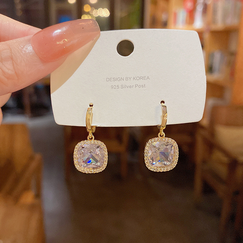 S925银针轻奢小众高级设计感几何形耳环简约百搭气质精致锆石耳钉