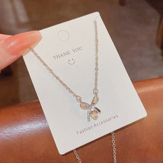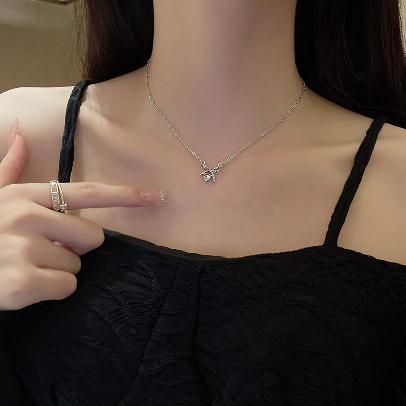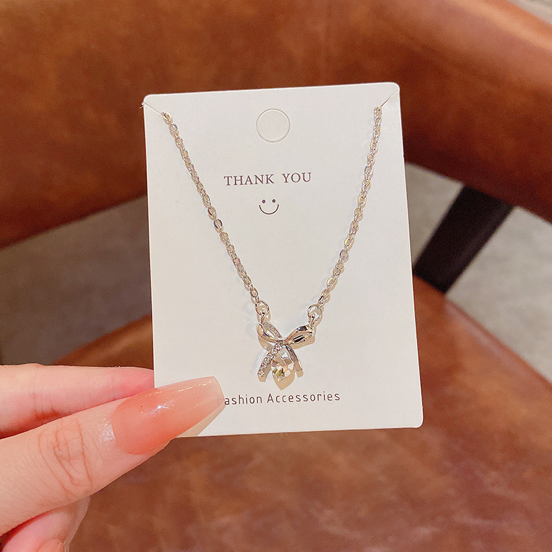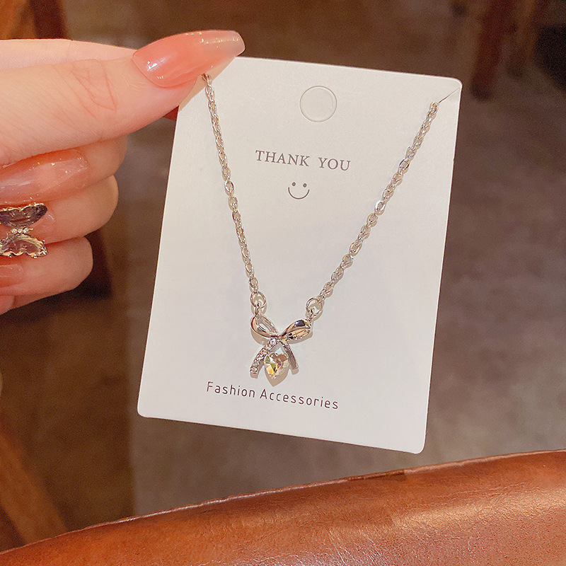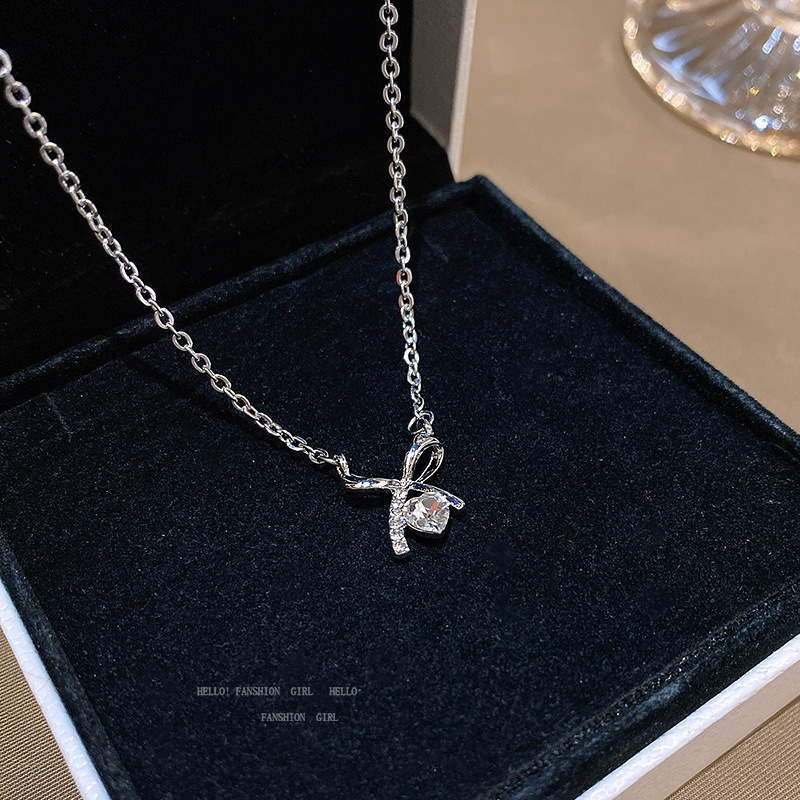 轻奢小众高级设计感蝴蝶结锆石项链女ins网红同款精致钛钢锁骨链