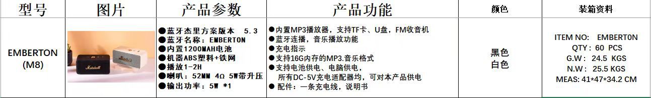 新款型号:EMBERTON(M8)