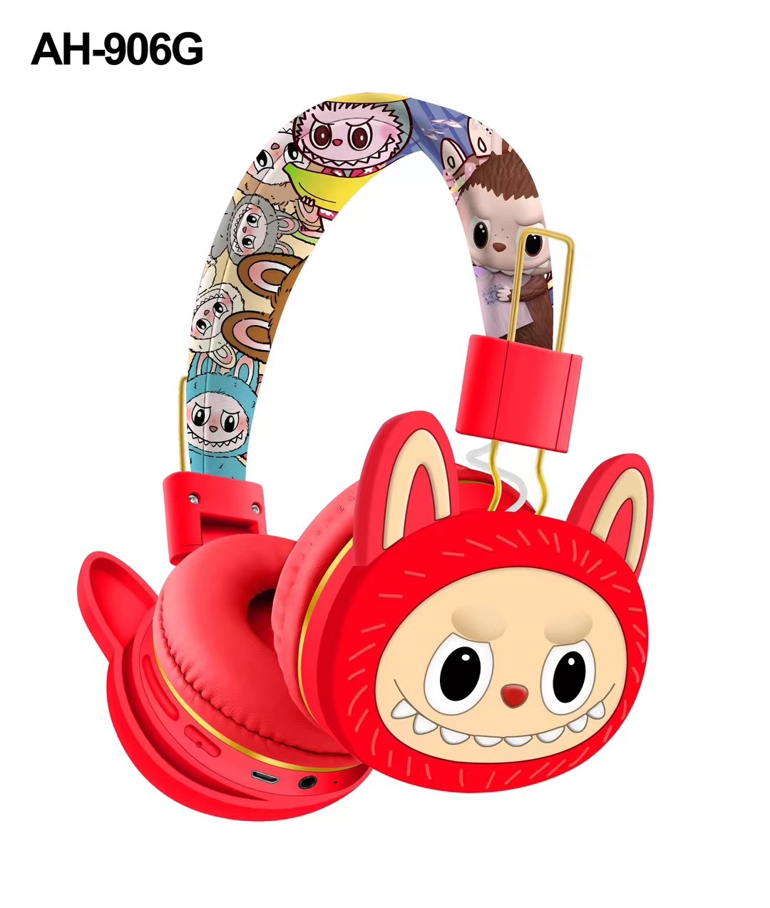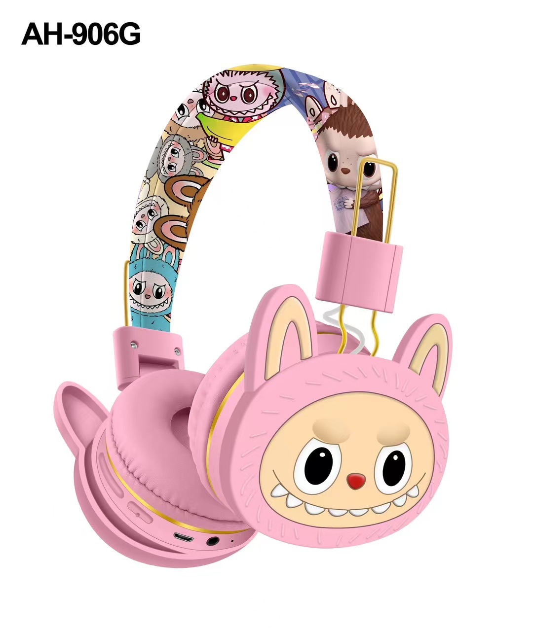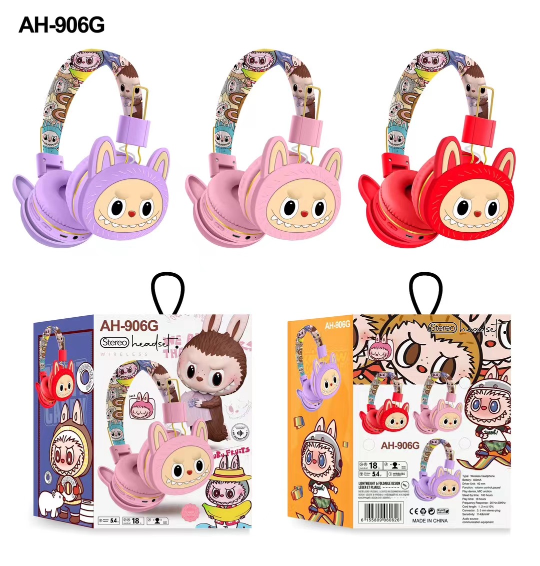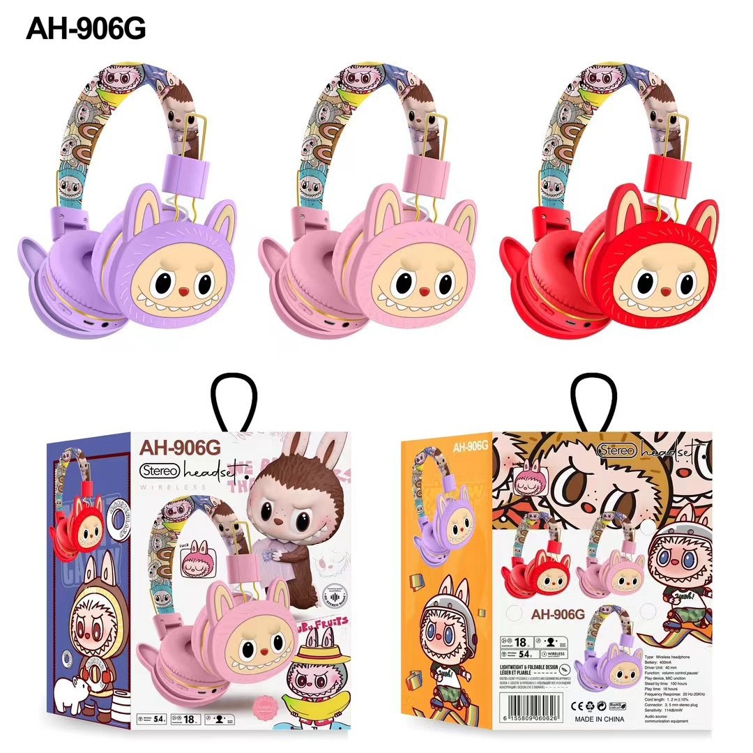 跨境新款头戴式蓝牙耳机AH-906G创意卡通拉布布儿童学生无线耳麦