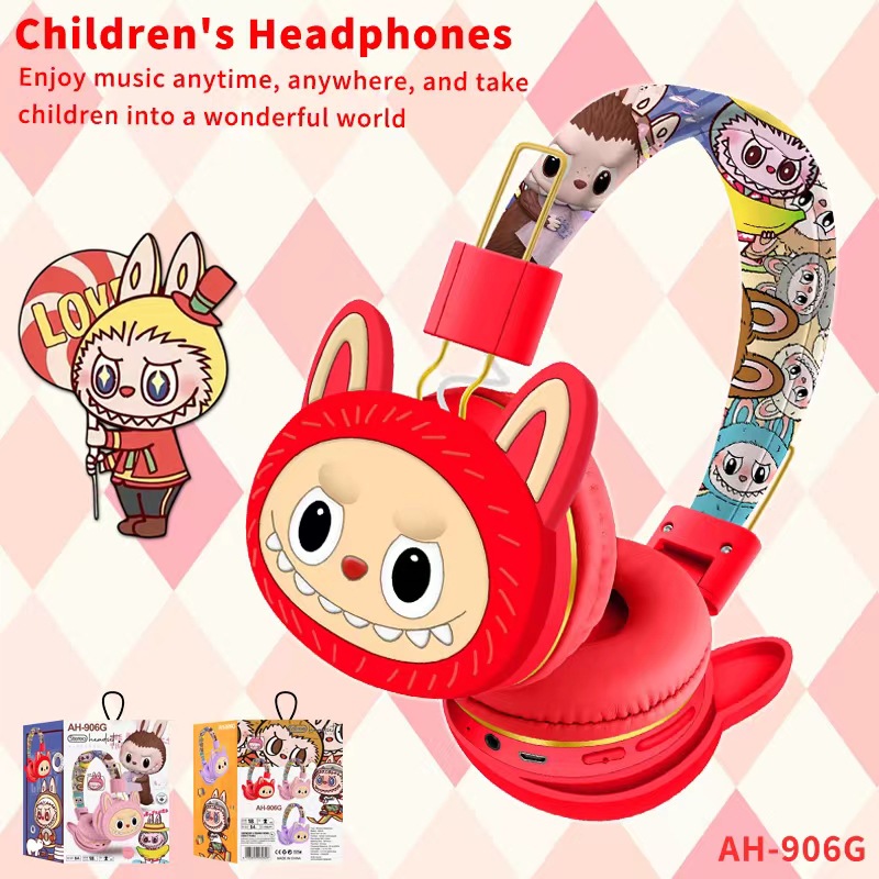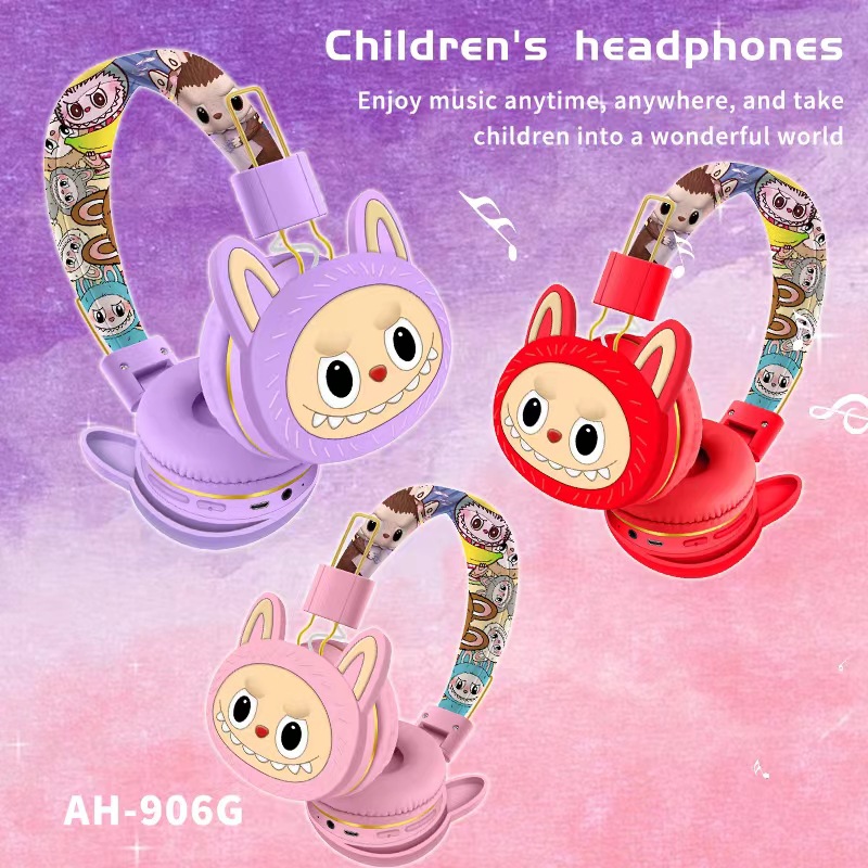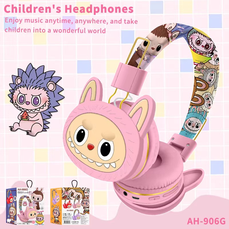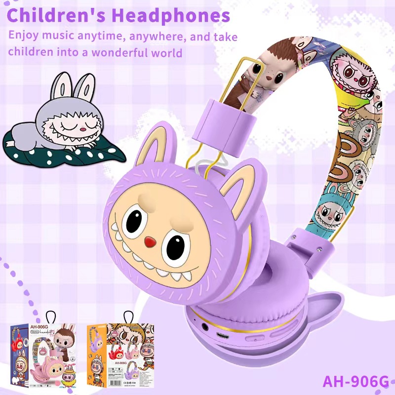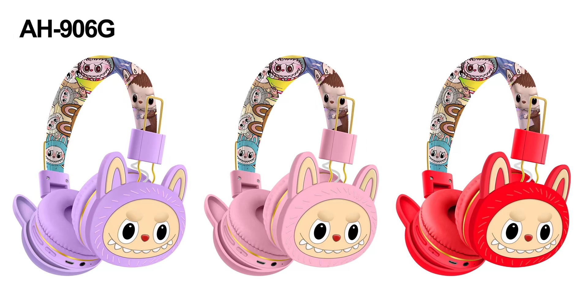 跨境新款头戴式蓝牙耳机AH-906G创意卡通拉布布儿童学生无线耳麦