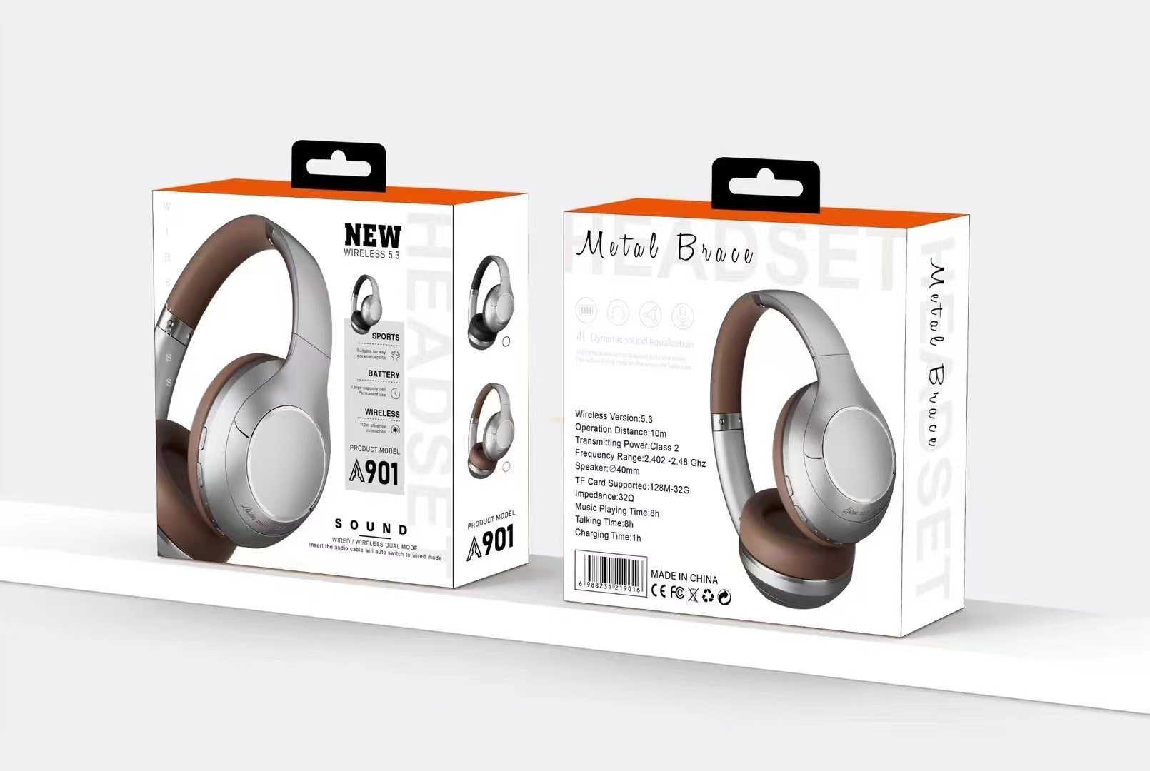 跨境新款 901BT 创意复古金属无线头戴式蓝牙耳机金属喷砂装饰片