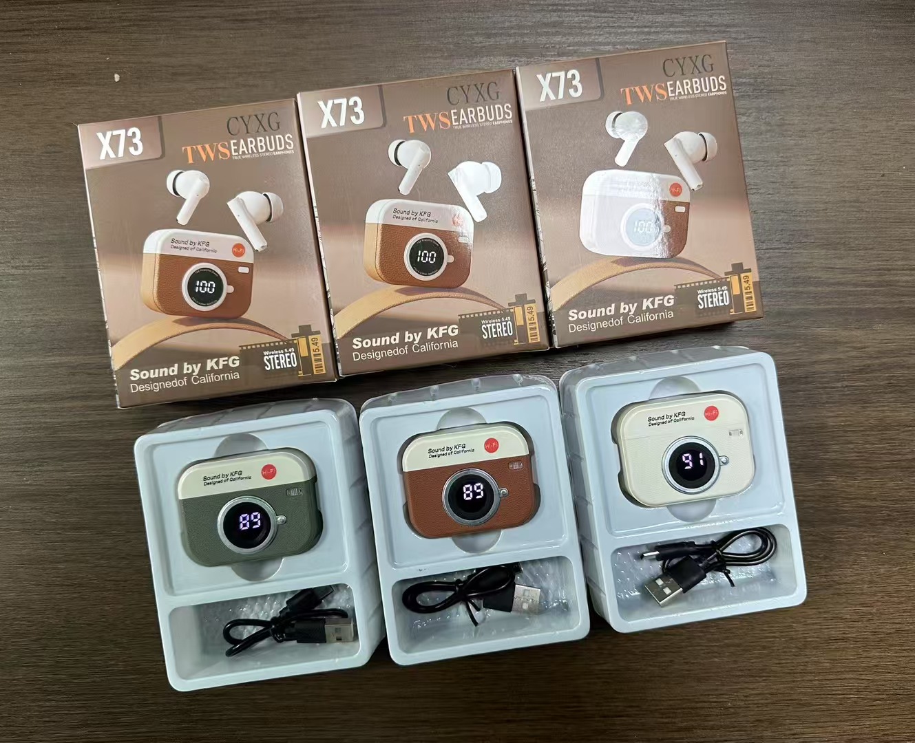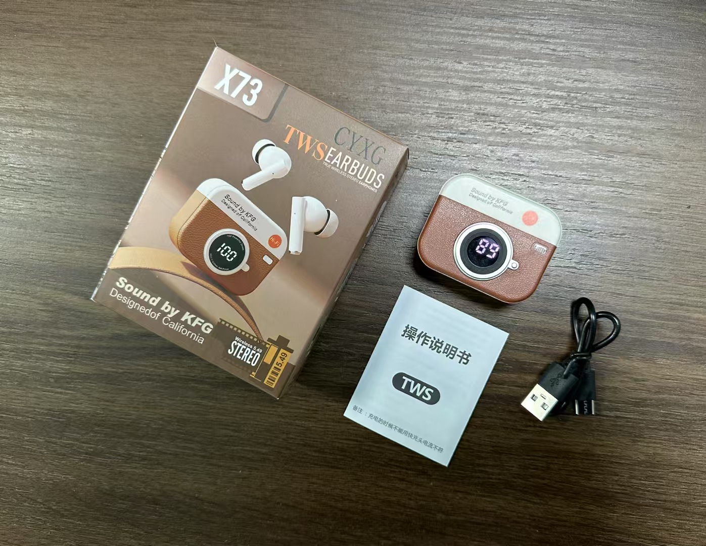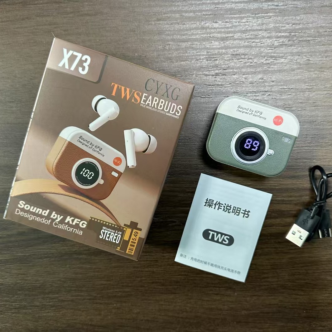 X73跨境热销TWS真无线蓝牙耳机运动复古相机入耳式高颜值男女通用