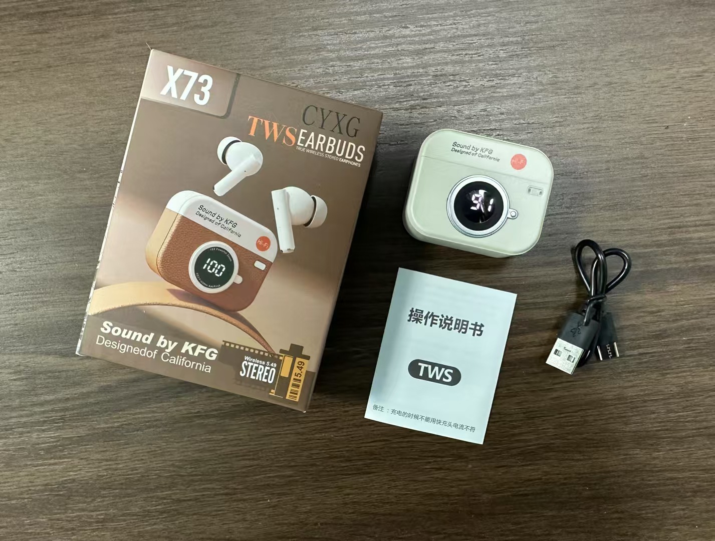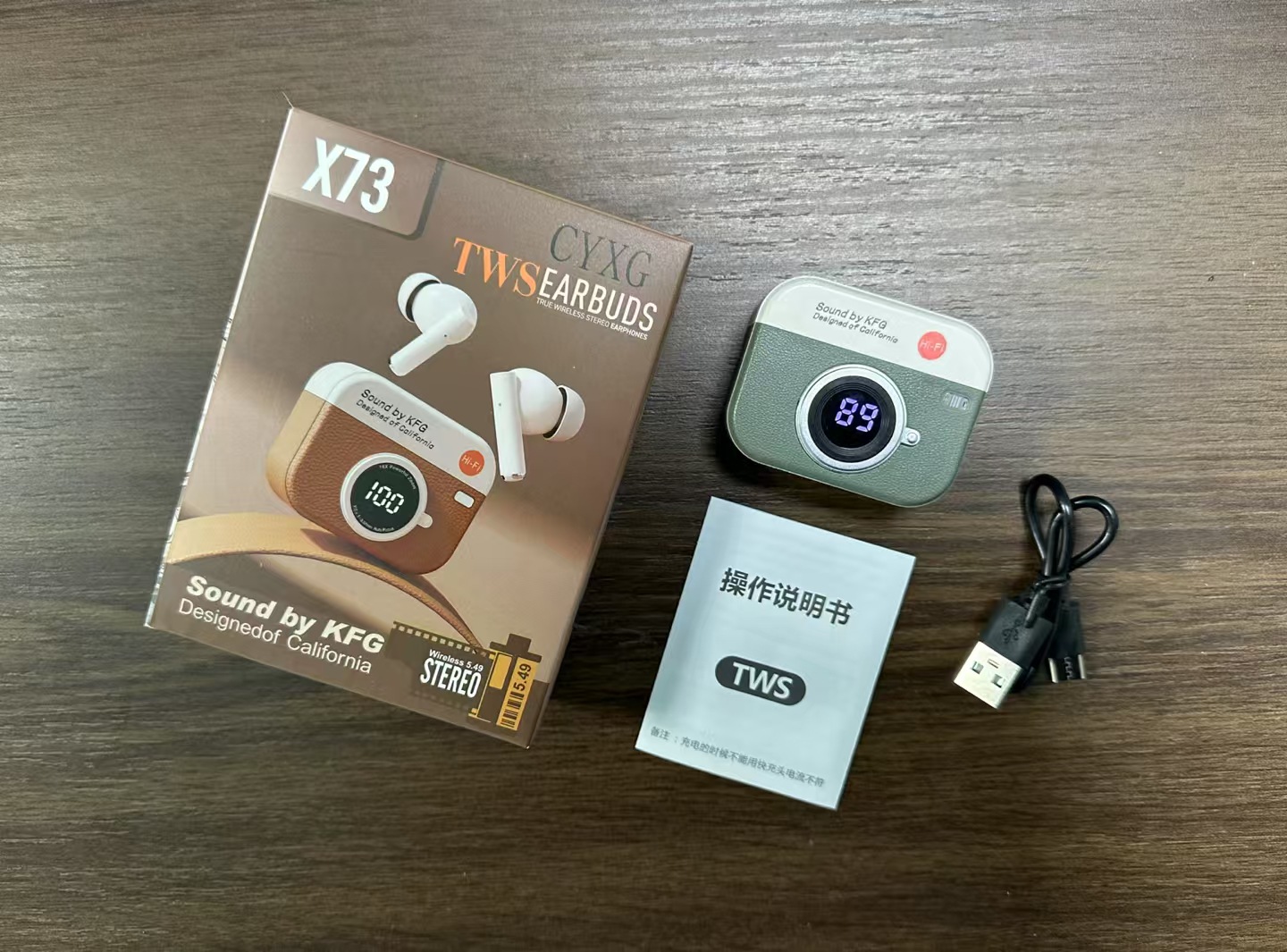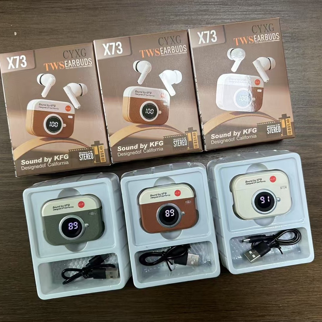 X73跨境热销TWS真无线蓝牙耳机运动复古相机入耳式高颜值男女通用