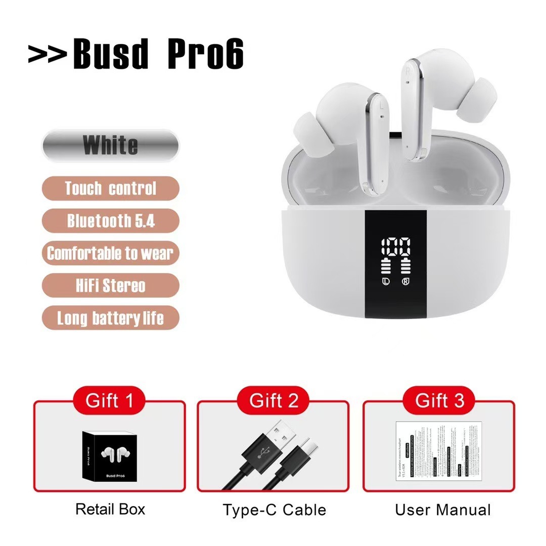 跨境新款适用于 Busd Pro6蓝牙耳机带数显运动时尚TWS无线耳塞