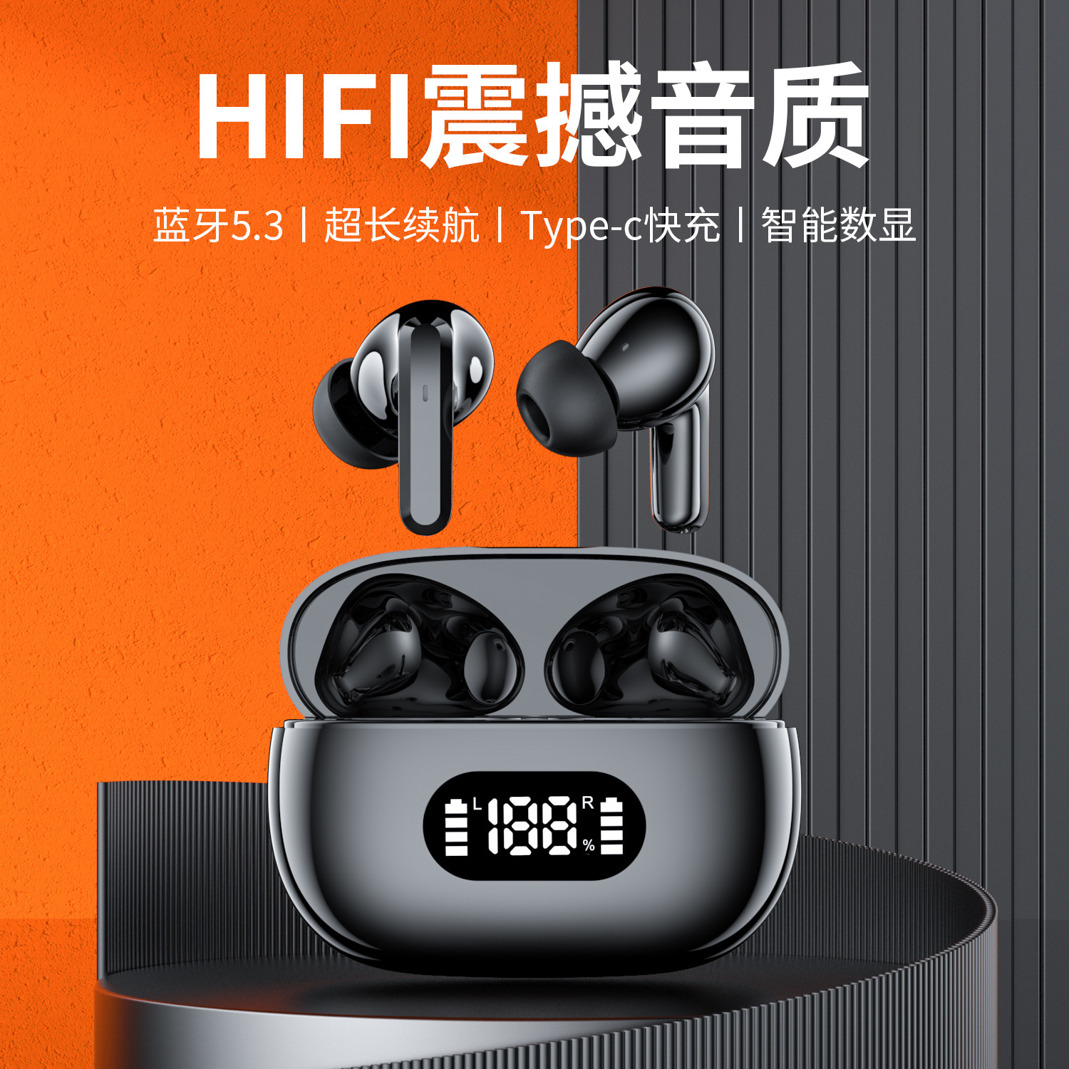 跨境外贸F05无线蓝牙耳机5.3低延迟长续航TWS智能LED数显运动耳机