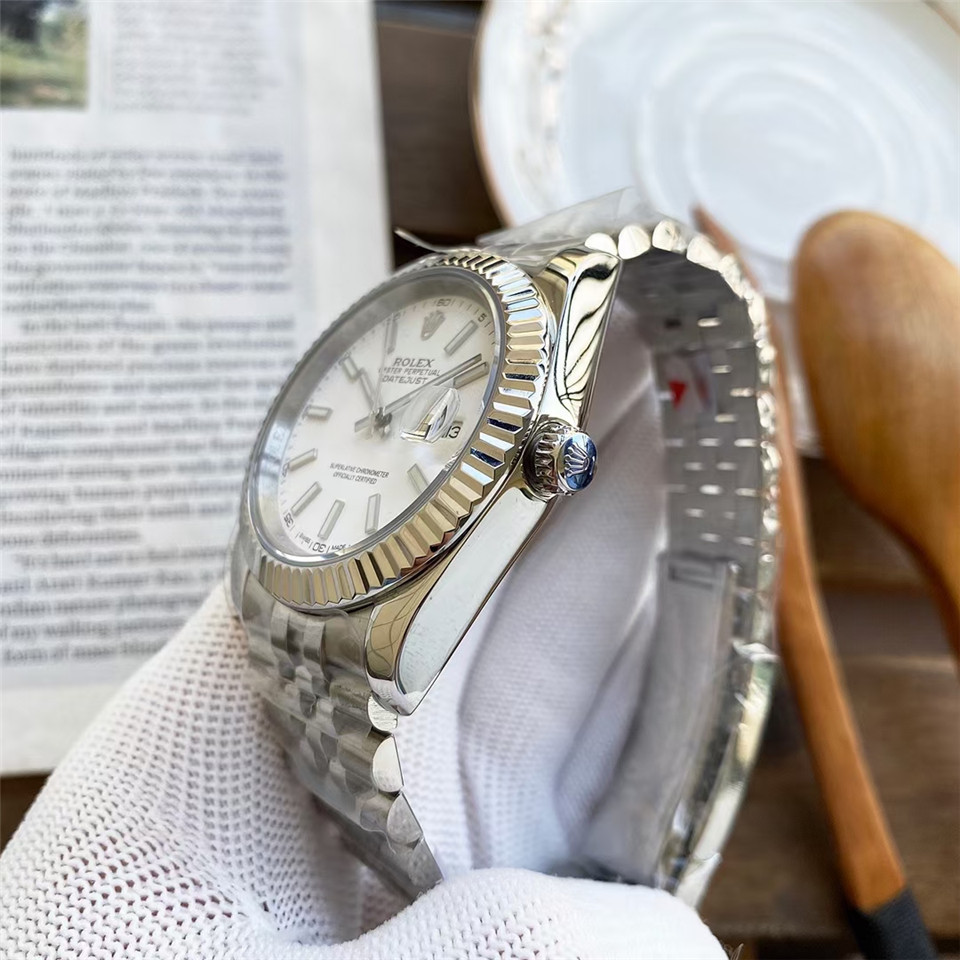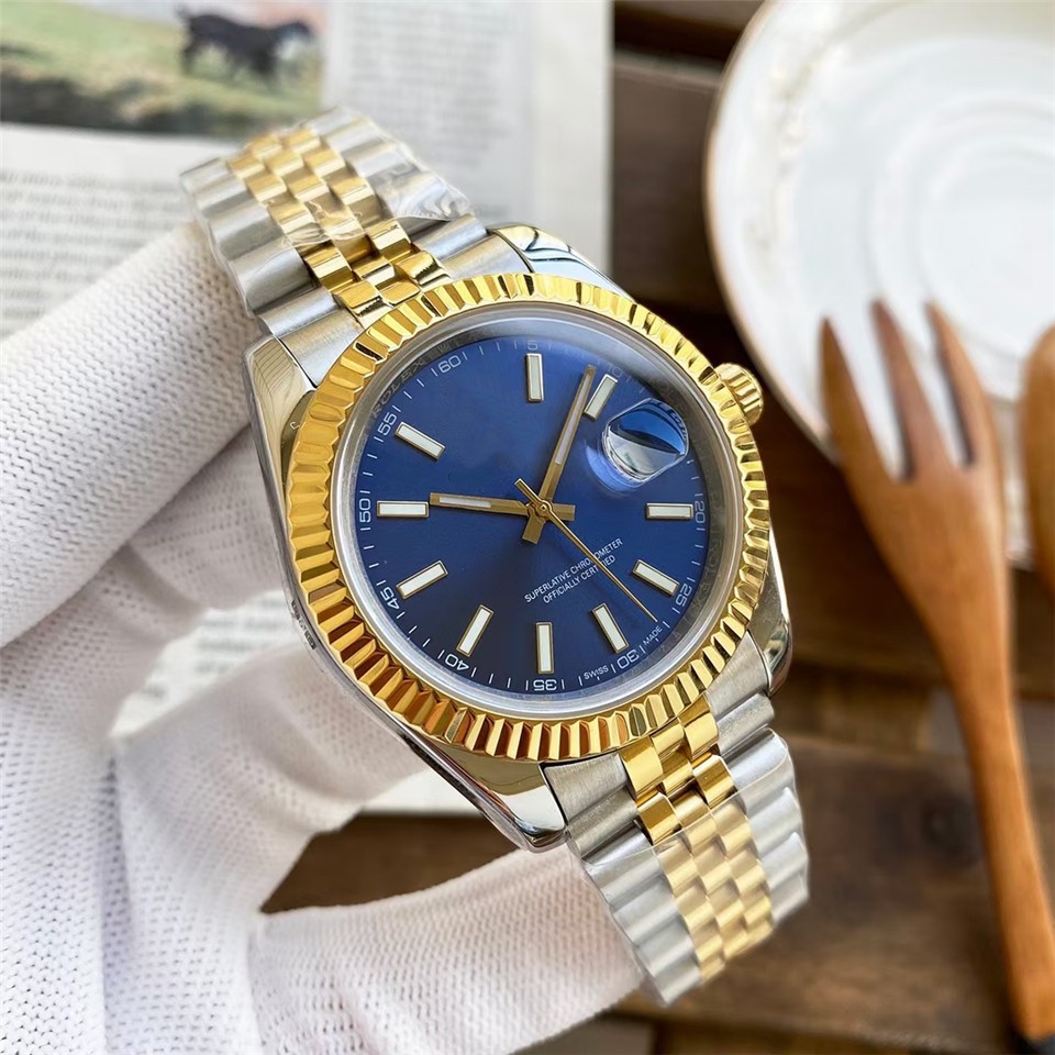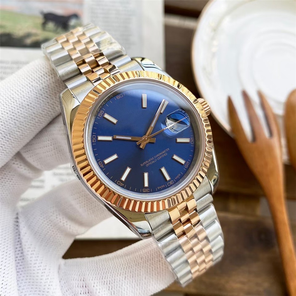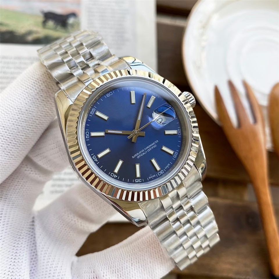 劳家男士自动机械蚝式钢带男款腕表钻面蓝宝指针日历情侣