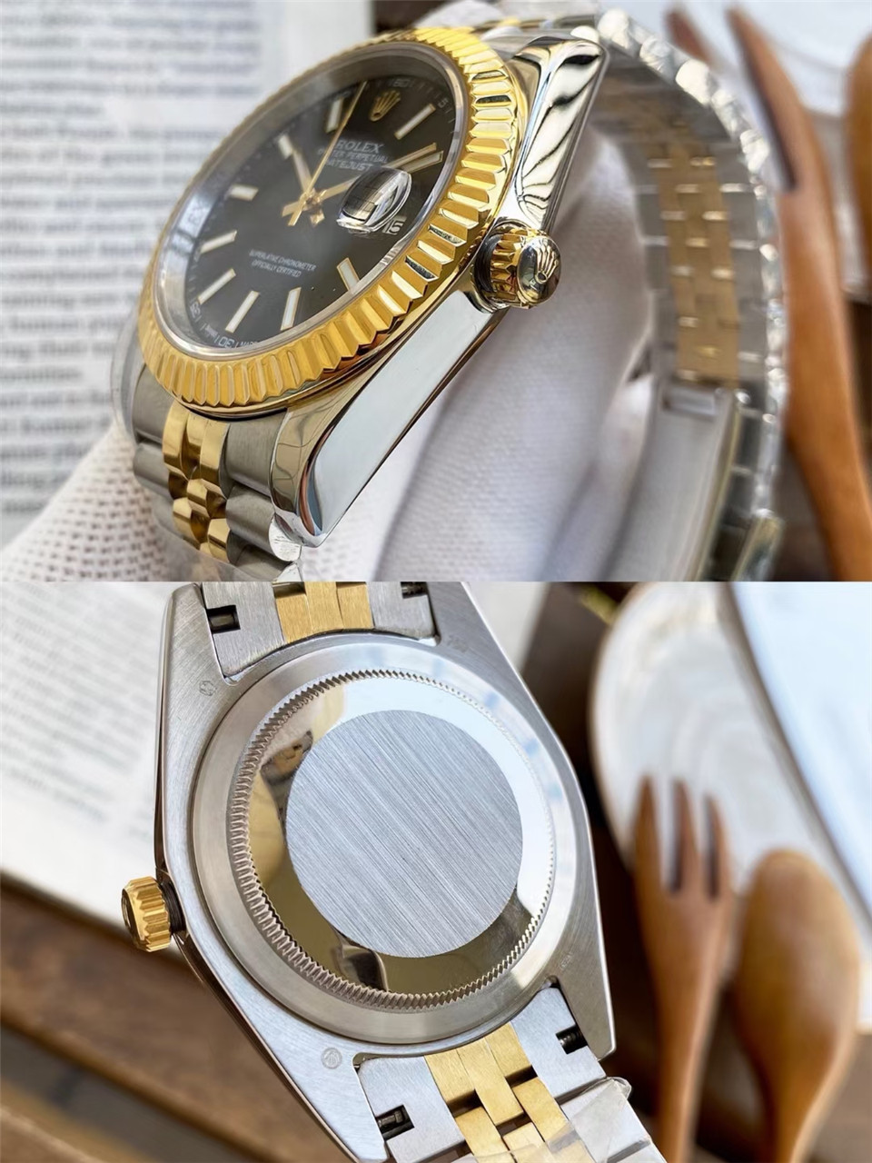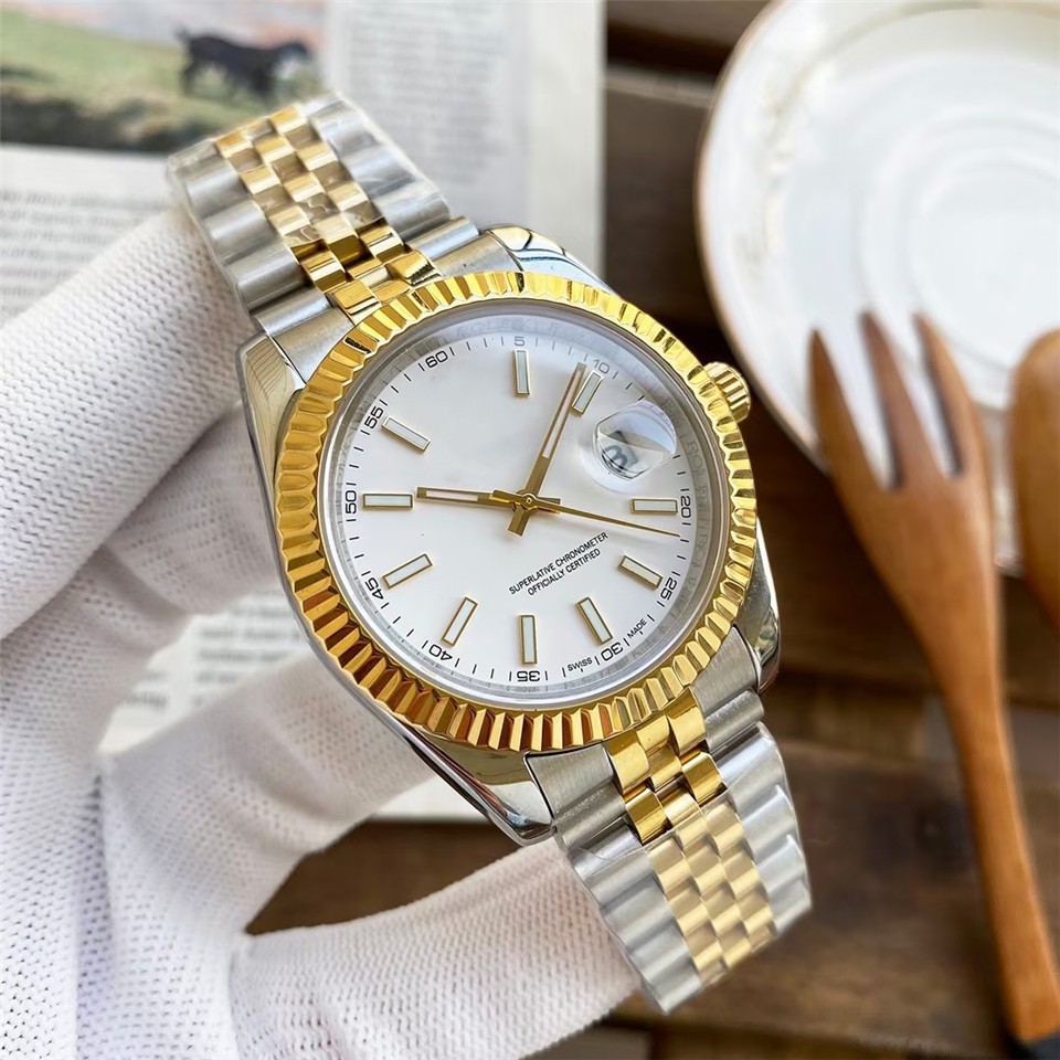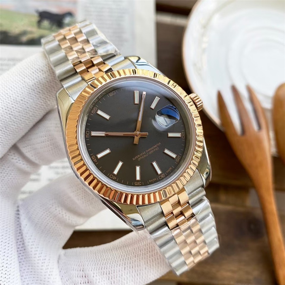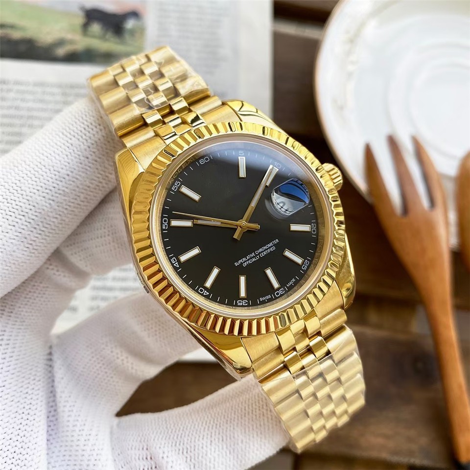 劳家男士自动机械蚝式钢带男款腕表钻面蓝宝指针日历情侣