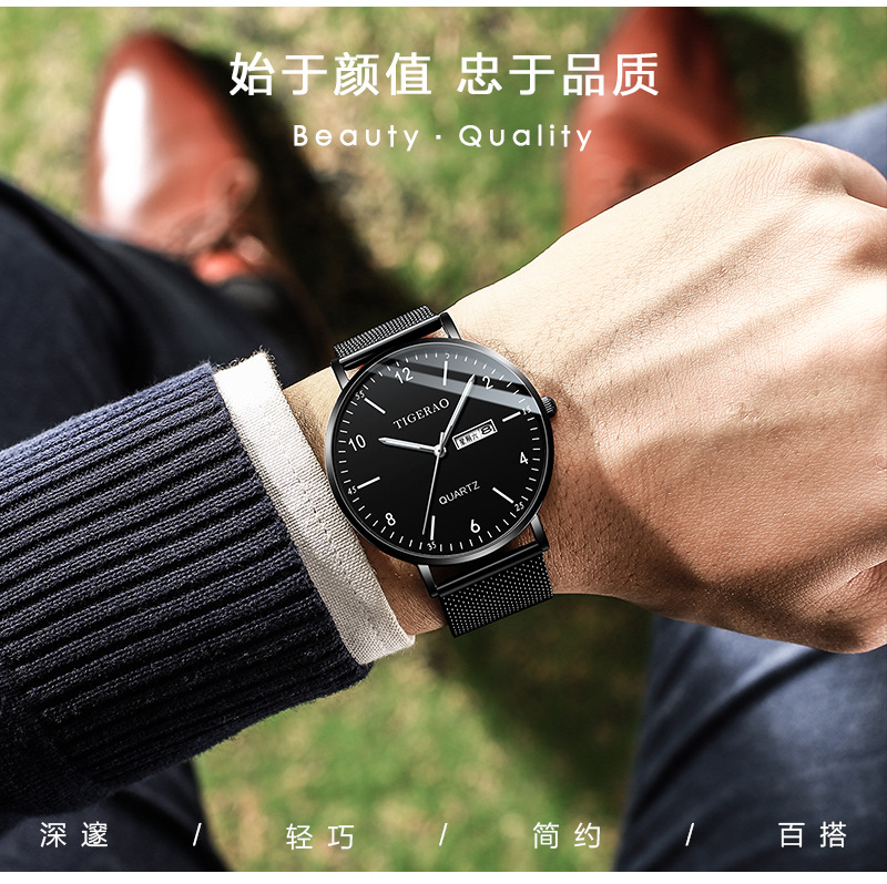 正品瑞士全自动机械表手表男士学生韩版时尚潮双日历防水夜光超薄
