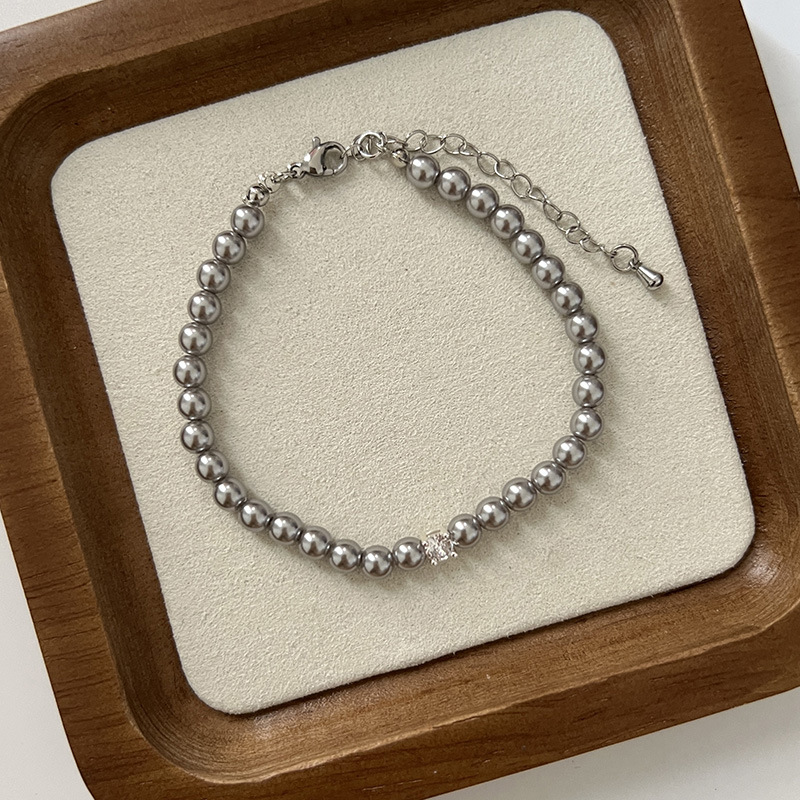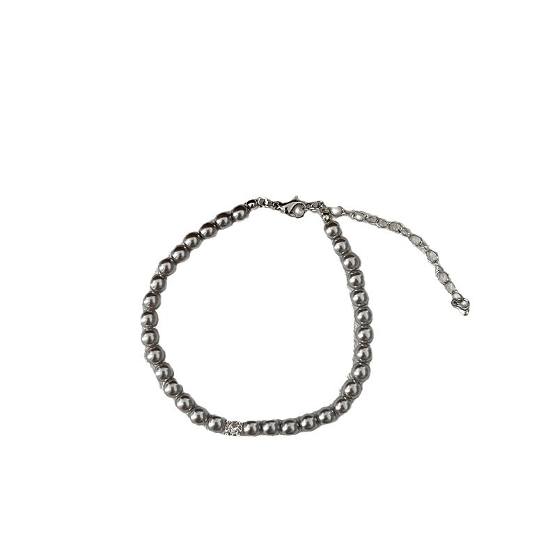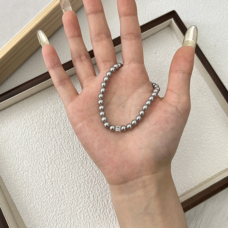 真麻多银灰色珍珠项链小众设计简约时尚百搭复古2024新款锁骨链