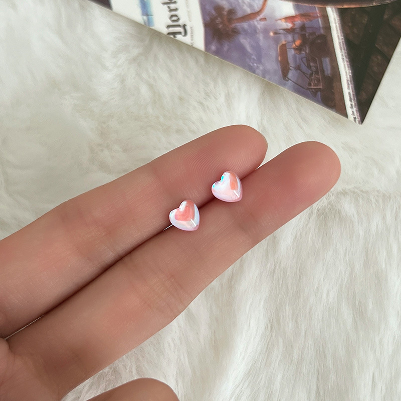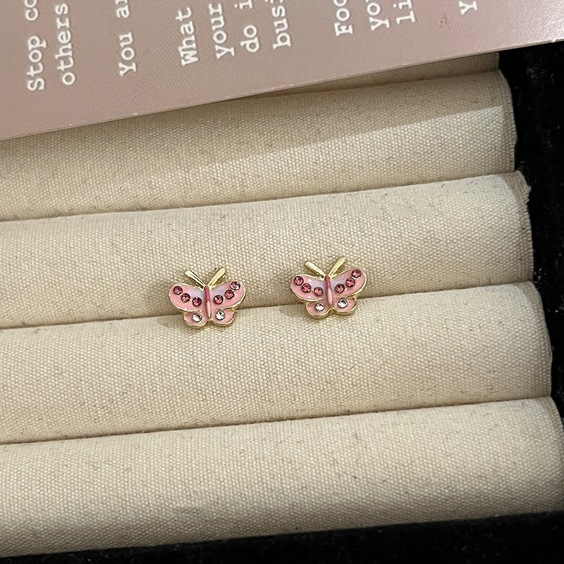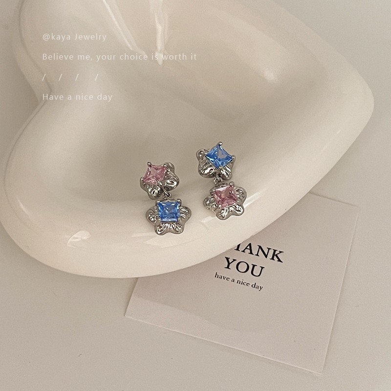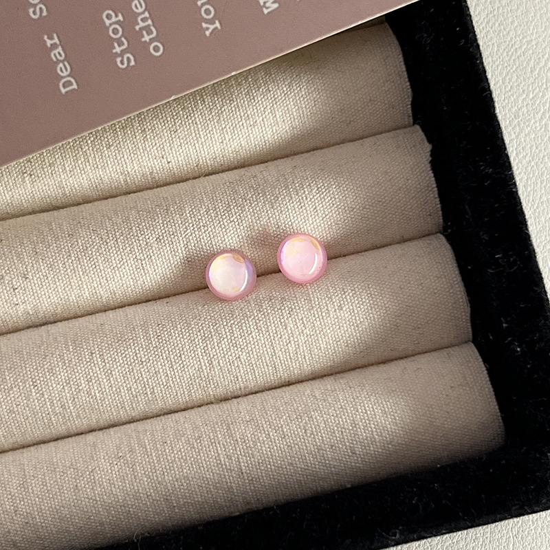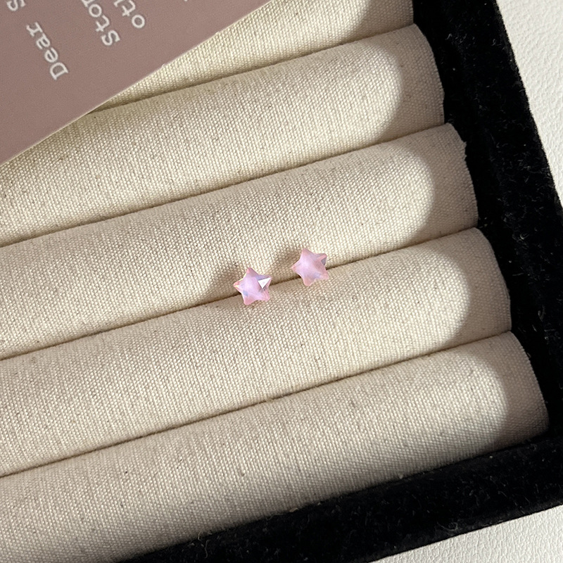 S925纯银针粉色锆石养耳洞耳钉女2024新款小众高级感睡觉免摘耳饰
