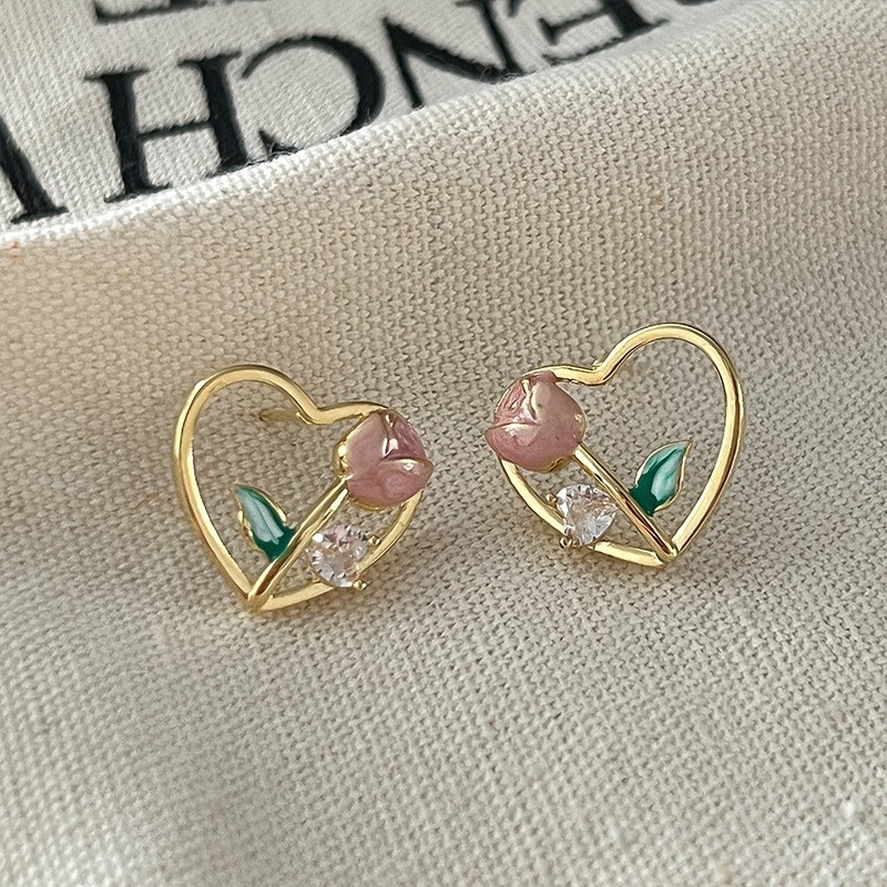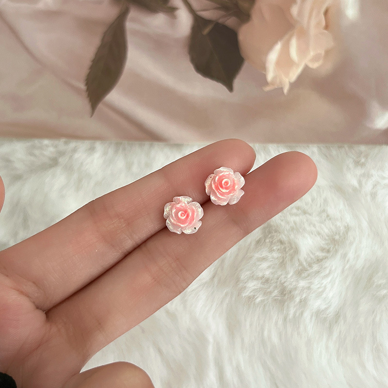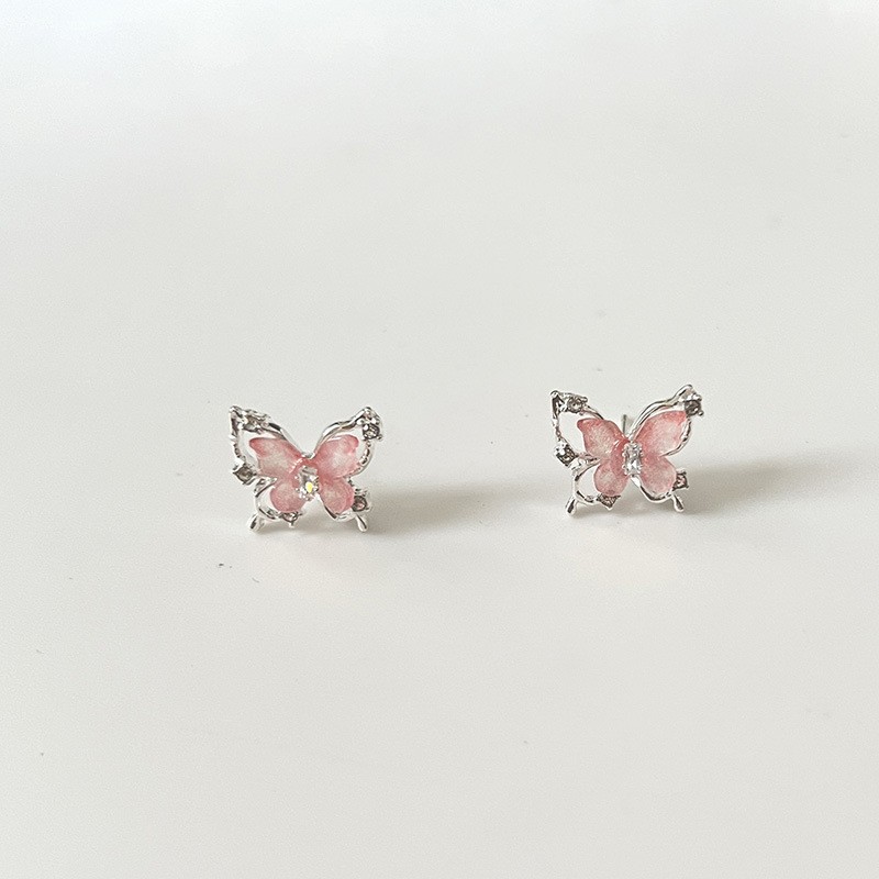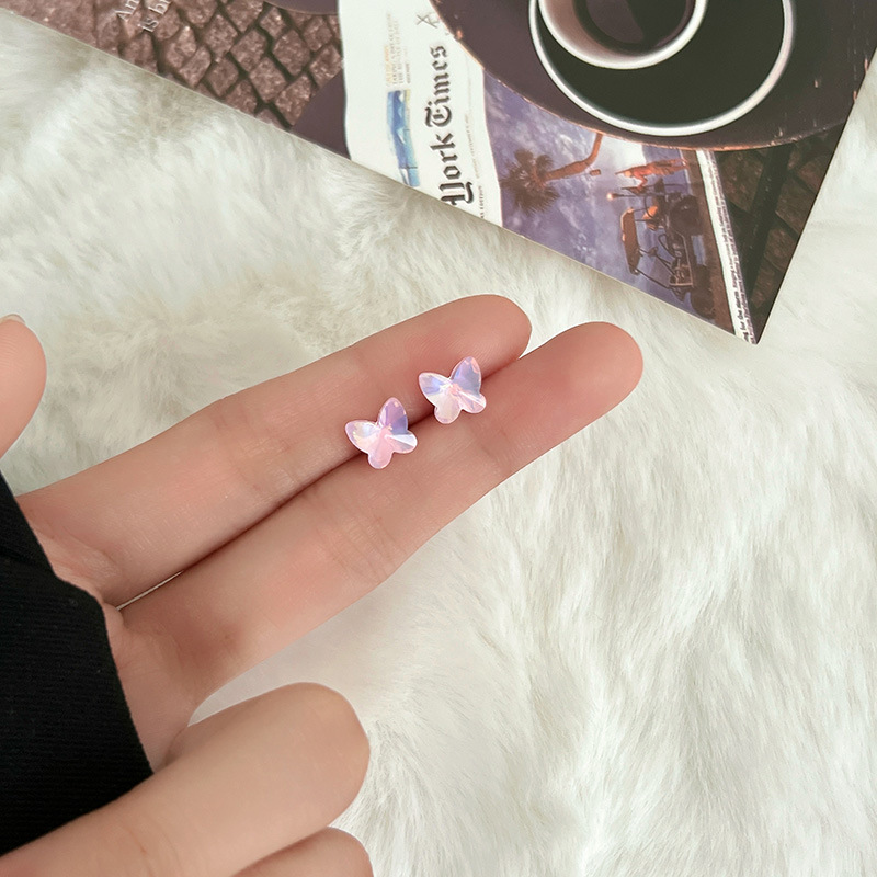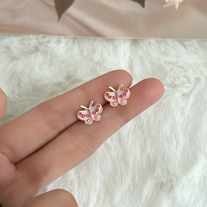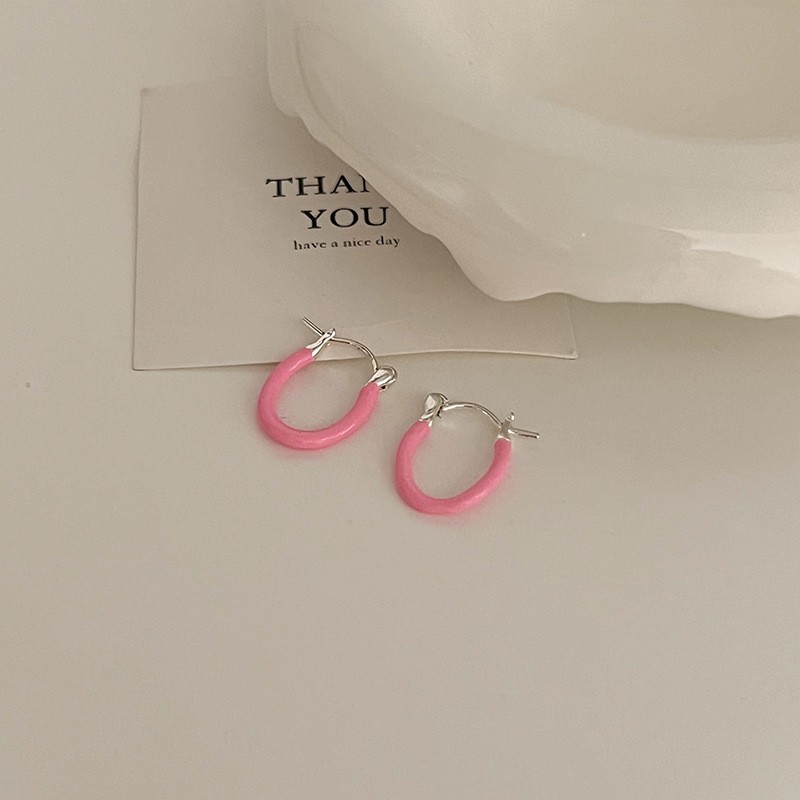 S925纯银针粉色锆石养耳洞耳钉女2024新款小众高级感睡觉免摘耳饰