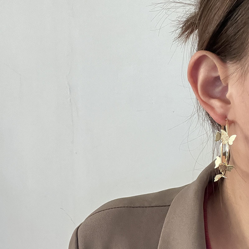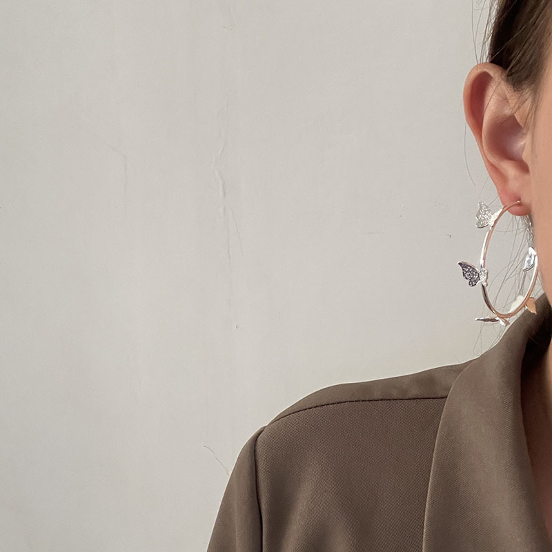 欧美夸张新款简约潮耳圈耳环女设计高级感独特蝴蝶圈圈耳环耳饰品